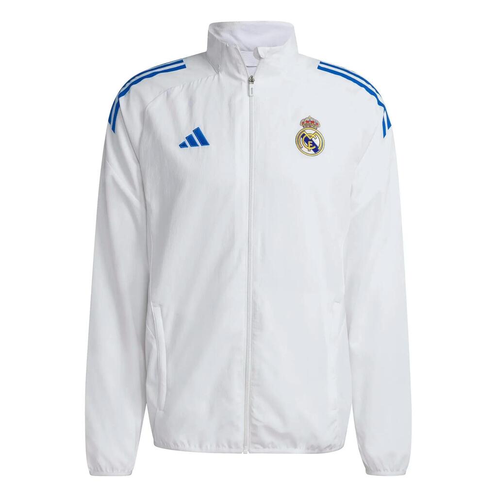 With the Real Madrid Prematch training jacket EU 2025/26, show your unconditional support with style and comfort. Invest in this must-have piece to proudly display your colours on and off the pitch.