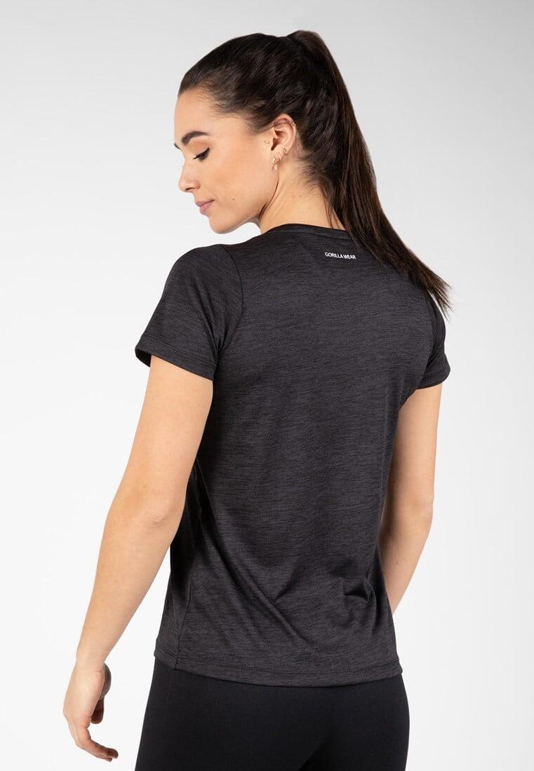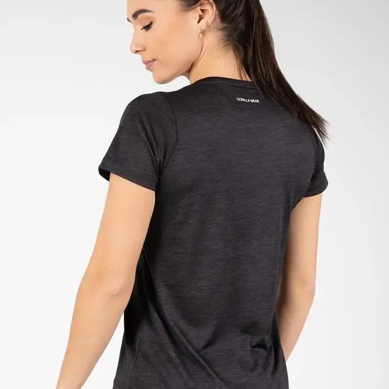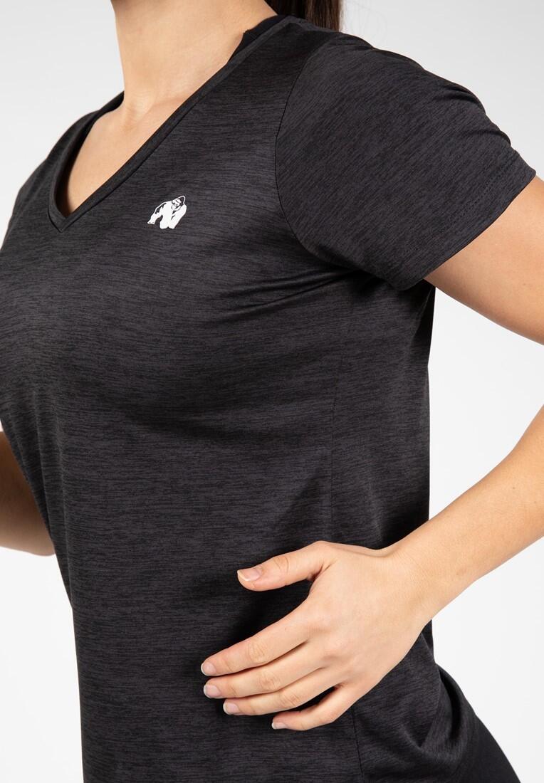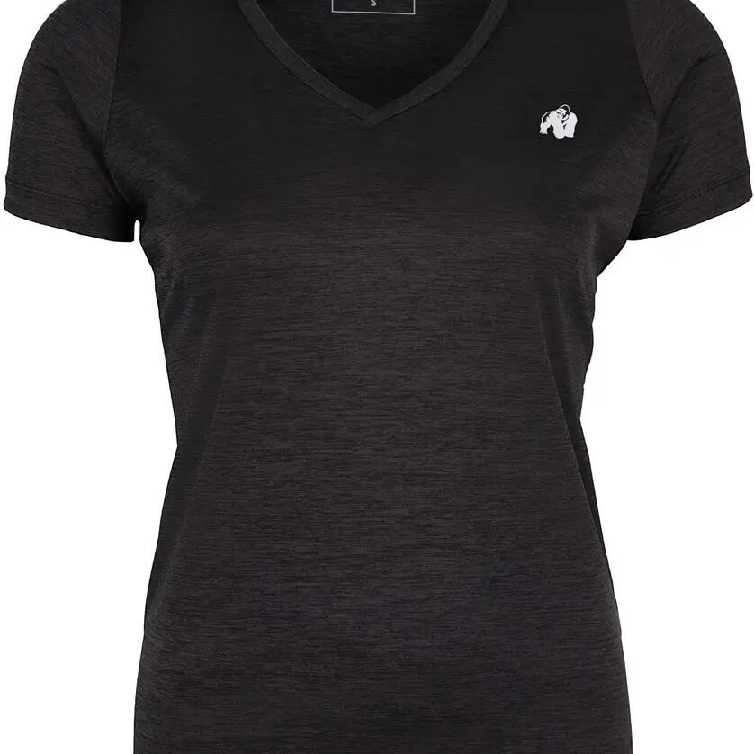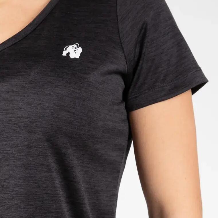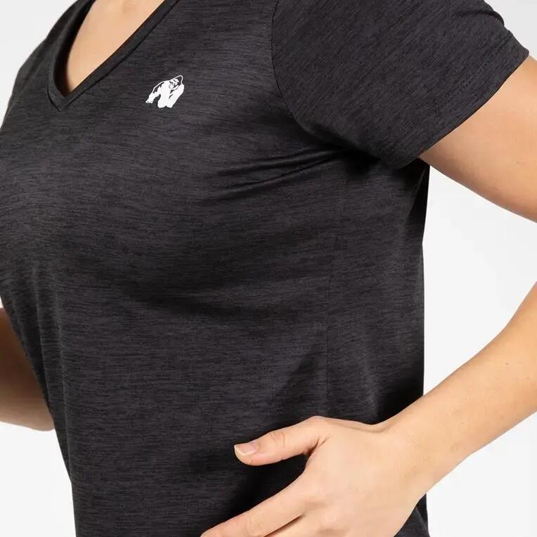 Tame the workout in style with the women's V-neck t-shirt Gorilla Wear Elmira, for a comfortable fit and soft feel in stretch polyester.