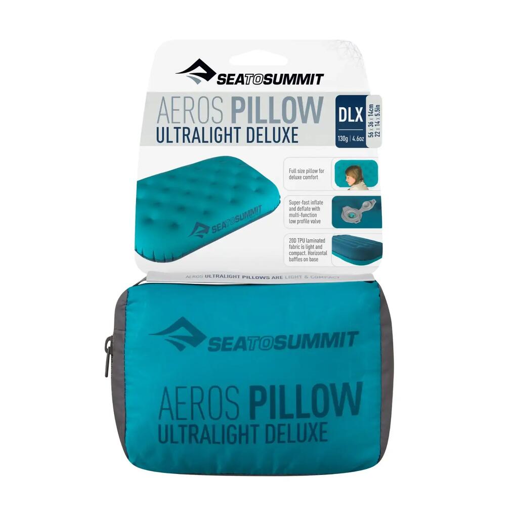 Ultralight inflatable pillow (60 g), stays put on your sleeping pad, inflates fast – comfort wherever you go!