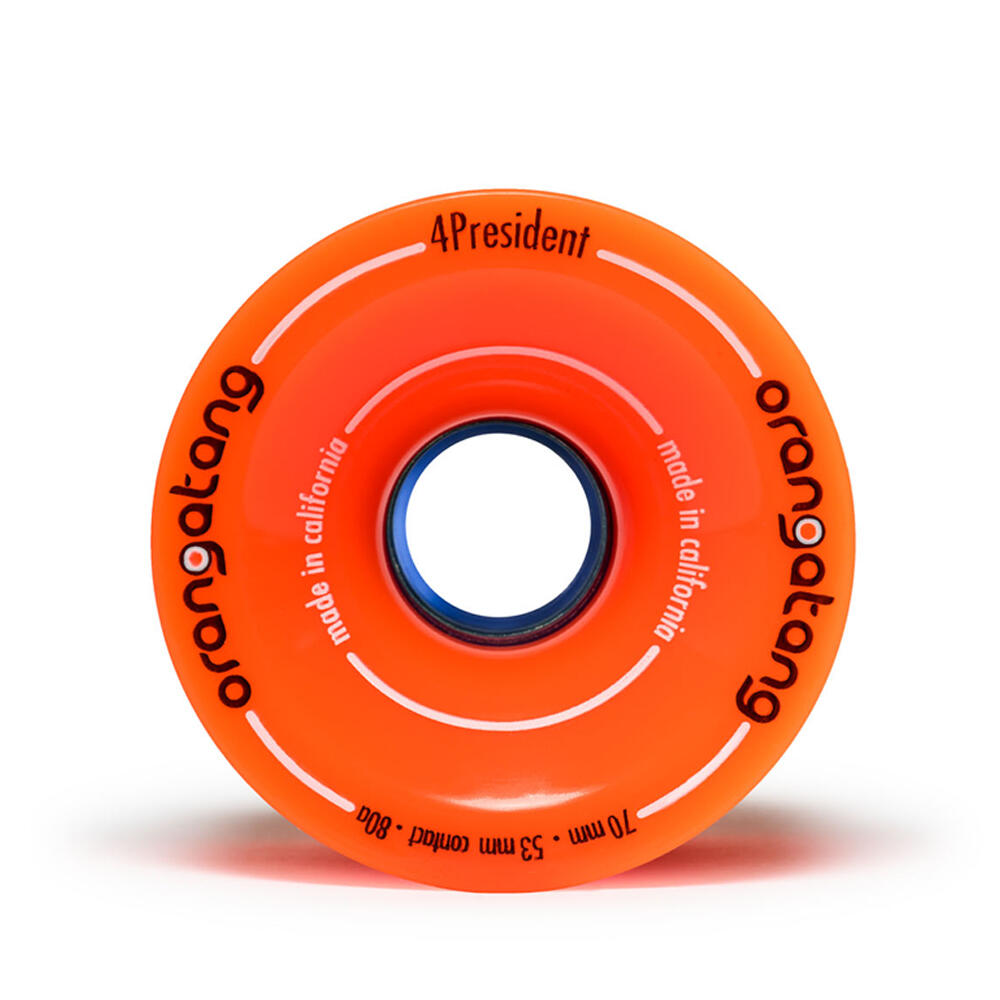 The Orangatang 4President wheels are really versatile and work well with any setup. With the off set core they will grip hard and hold well until you need them to slide out with ease. Set of 4 70mm 86A Longboard Wheels