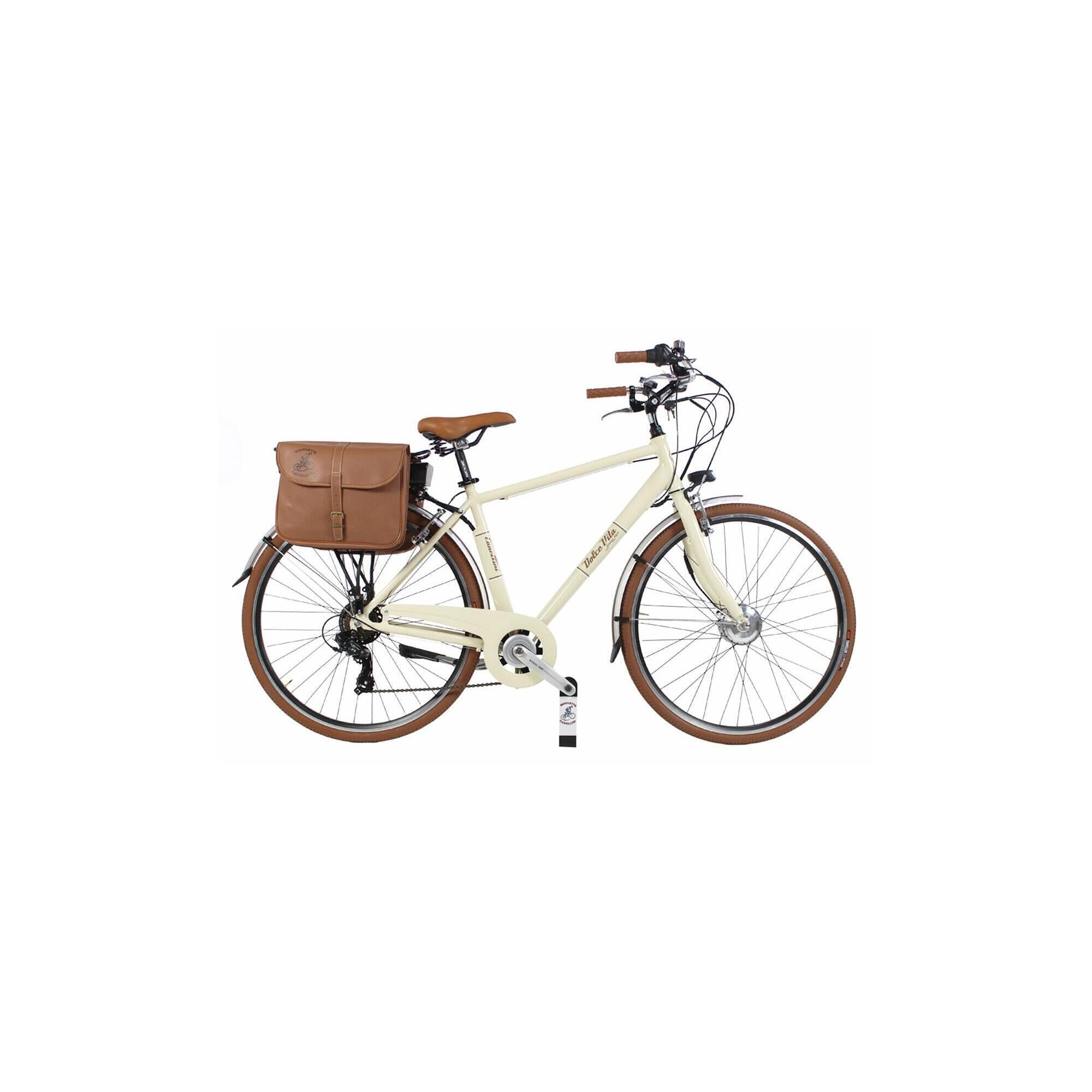 Electric city bike Dolce Vita by Canellini man with bags - Cream