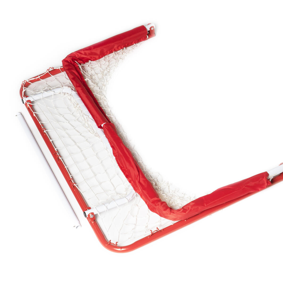 Mini street field hockey goal in sturdy steel, compact dimensions 60 × 26 × 45 cm, weather-resistant polyester net and ultra-fast assembly for play and training anywhere.