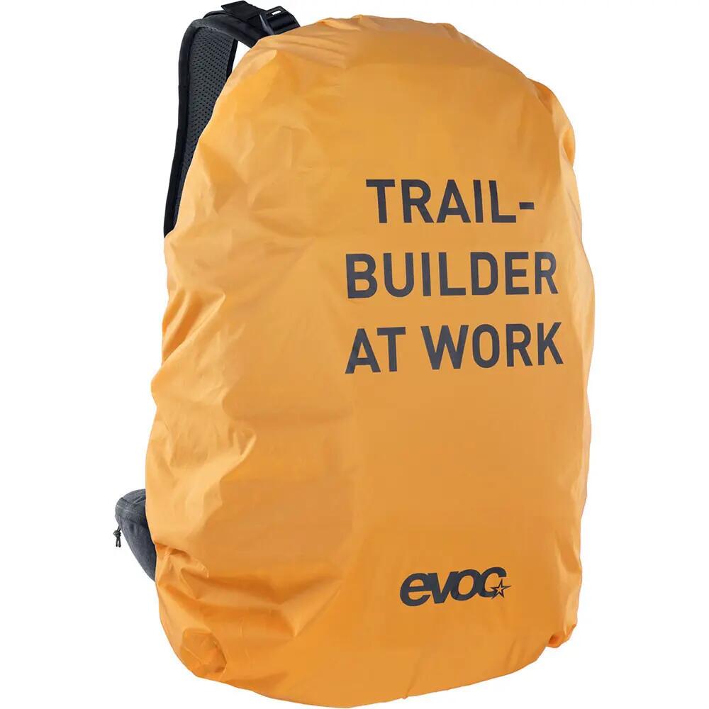Whether it's a secret spot or your favourite line at the bike park, one thing most trails have in common is that someone built them with a lot of sweat and tears. To support trail builders in their work, EVOC has developed the TRAIL BUILDER 35, a carefully designed backpack with a multifunctional attachment system to securely and reliably transport a chainsaw, rake, pickaxe, and many other tools. Additionally, it features plenty of handy compartments to organise all your gear. Besides the main compartment, it has a phone and glasses pocket, pockets on the hip belt, extra side compartments, a separate compartment for dirt, another for clean clothes, a tool compartment, an organiser compartment, and a removable NAIL WRAP for carrying screws and nails, etc. And since many pieces of equipment are also heavy, we’ve put a focus on a perfect fit and a high level of comfort, even with heavy loads. The backpack takes you on the trail equipped with ergonomic and padded shoulder straps, EXTRA WIDE HIP WINGS, a chest strap, and a hip belt, as well as the highly ventilated AIR CIRCULATION back system. Thanks to the very durable Cordura fabric, resistant to cuts and tears, it can withstand all sorts of abuse. Cleverly, the bright orange dirt and rain protection with the TRAIL BUILDER PRINT can be used as a panel to warn riders of the 'construction' in progress.
