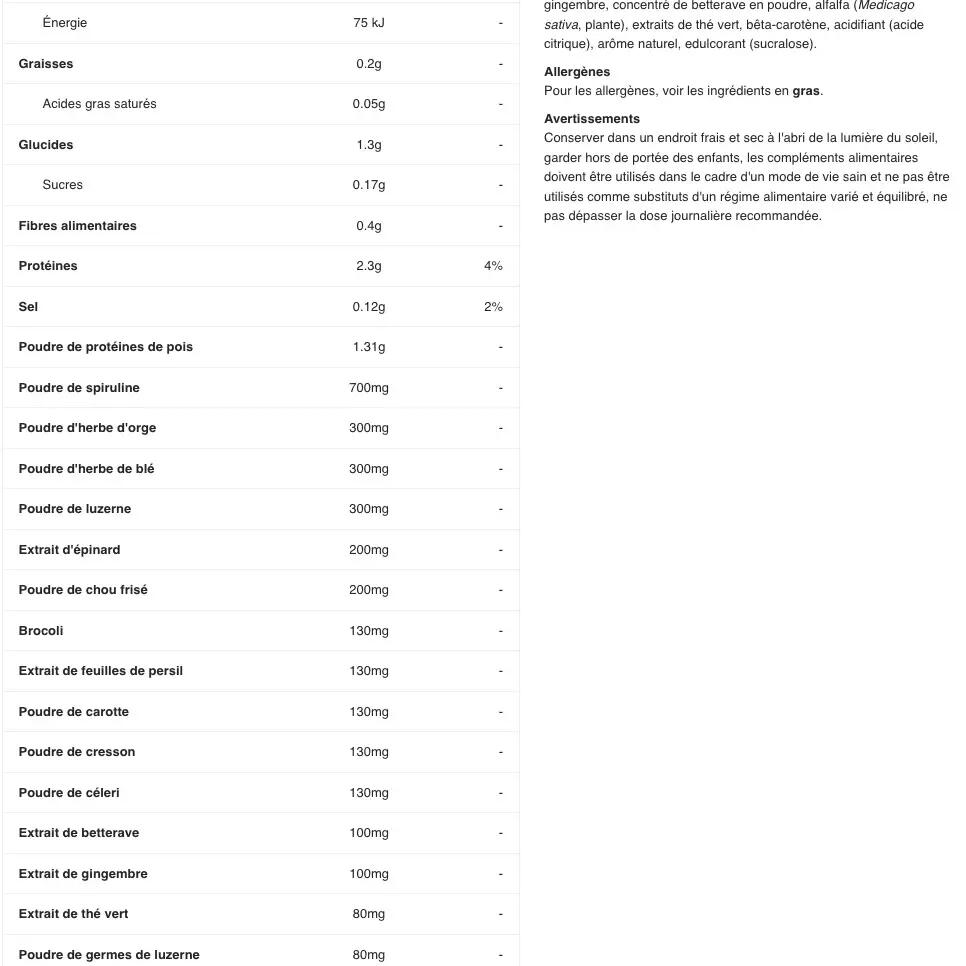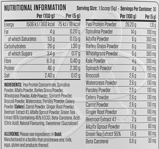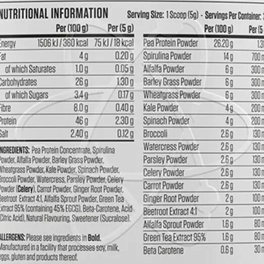 Applied Nutrition Critical Greens | Powder product with declared nutritional information