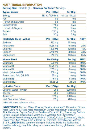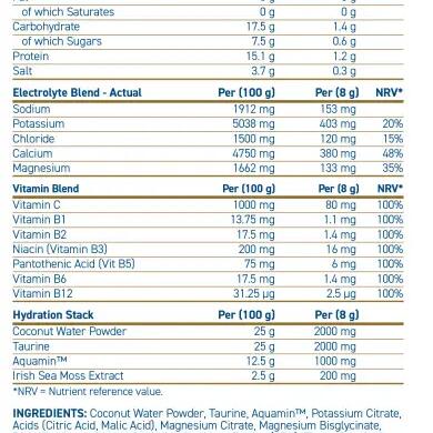 Applied Nutrition Hydration+ | Drink powder with declared nutritional information