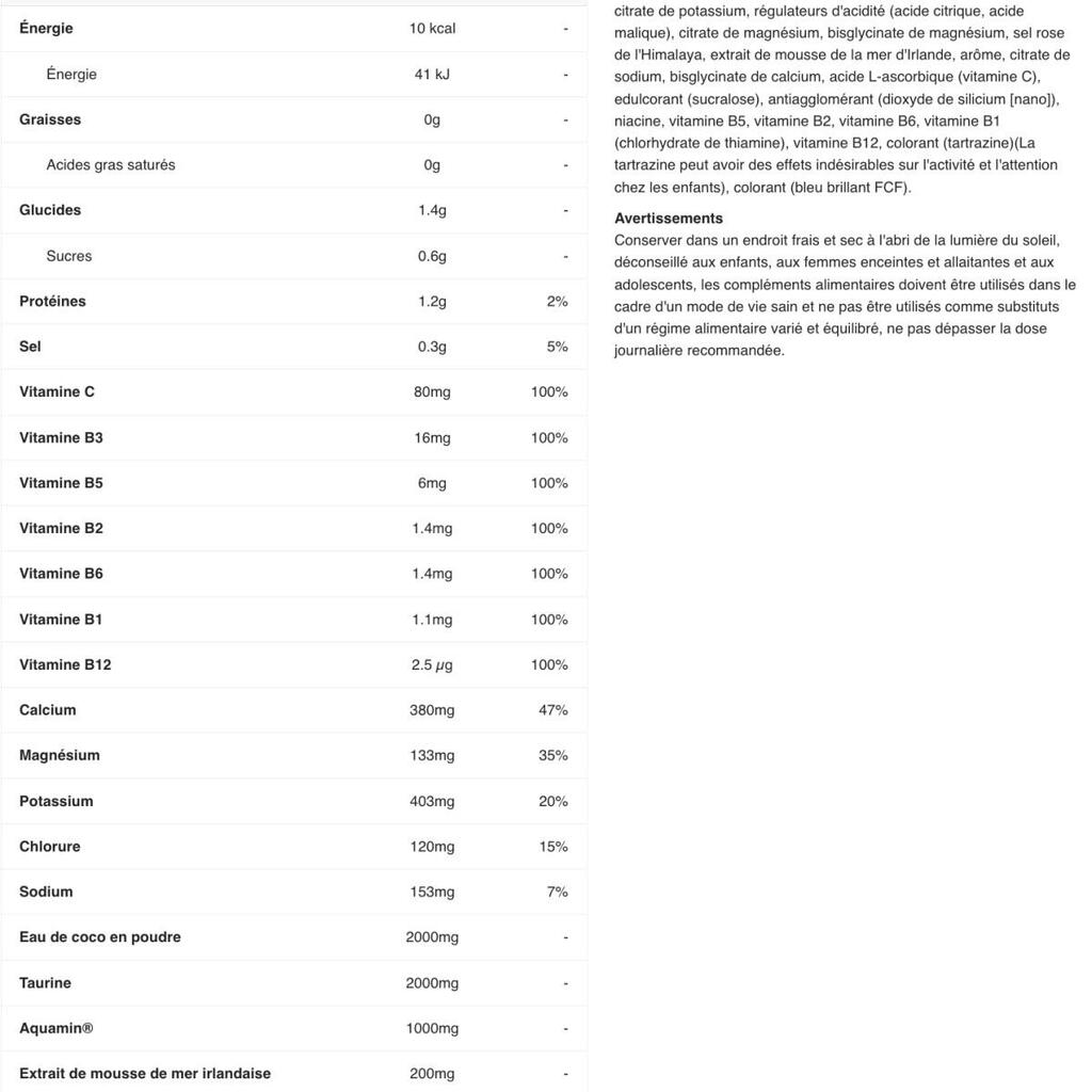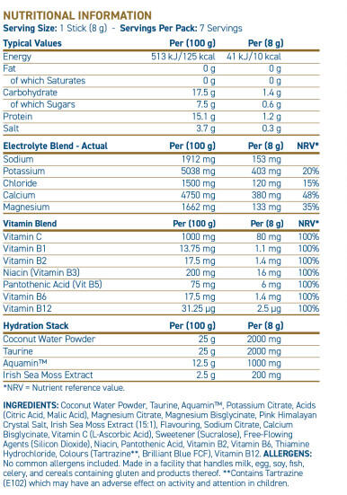 Applied Nutrition Hydration+ | Drink powder with declared nutritional information