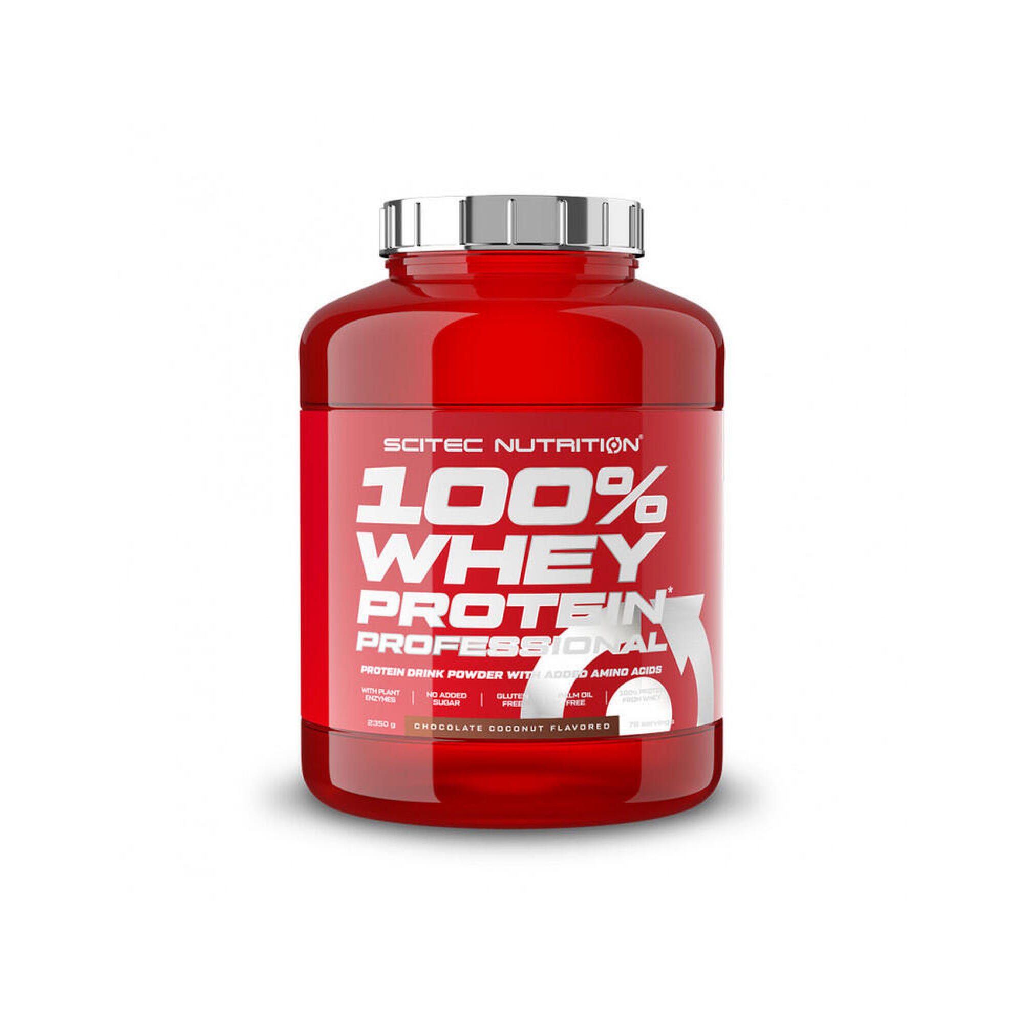 100% Whey Protein Professional from Scitec Nutrition is a high-quality protein blend based on whey isolate and whey concentrate. Dietary proteins provide nitrogen and essential amino acids, which the body needs for growth and tissue maintenance.As a result, the proteins present in 100% Whey Protein Professional contribute to the development and maintenance of muscle mass and skeletal health*Obtained from milk, 100% Whey Protein Professional is considered a complete protein, as it provides the body with all essential amino acids, including the 8 essential amino acids and BCAAs that the body is unable to synthesize and which must be supplied by the diet (Histidine, Isoleucine, Leucine, Lysine, Methionine, Phenylalanine, Threonine, Tryptophan, Valine).100% Whey Protein also contains other ingredients: an 'amino acid matrix', which provides other amino acids, namely L-leucine, L-glutamine and taurine, and a complex of two digestive enzymes, papain and bromelain.Its delicious taste, perfectly fluid texture and very low lactose content make 100% Whey Protein Professional one of the finest protein powders available today.100% Whey Protein Professional is used by all top athletes to build muscle mass while staying dry.Its 2.3kg format enables regular consumers to supplement their daily protein intake!Available in chocolate, vanilla, strawberry, banana, chocolate & coconut, strawberry & white chocolate, cappuccino, chocolate hazelnut, vanilla & red fruit, kiwi & banana, lemon cheescake, coconut, peanut butter, chocolate cookies, Café Glacé, Pistachio white chocolate.