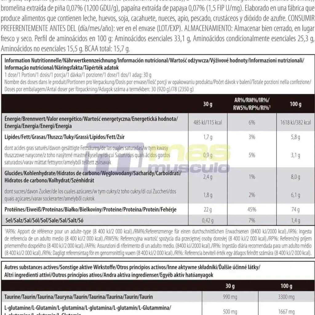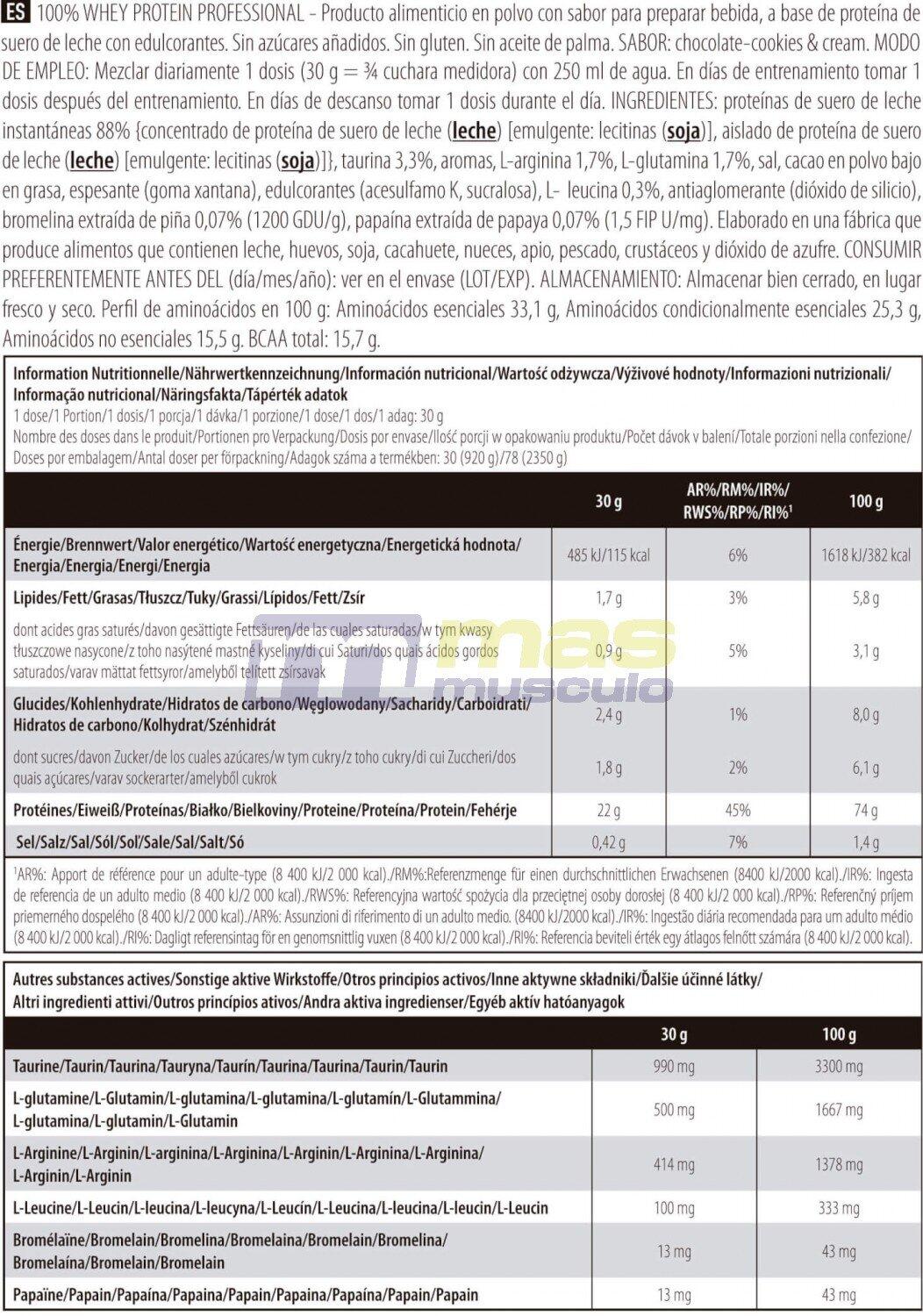 100% Whey Protein Professional from Scitec Nutrition is a high-quality protein blend based on whey isolate and whey concentrate. Dietary proteins provide nitrogen and essential amino acids, which the body needs for growth and tissue maintenance.As a result, the proteins present in 100% Whey Protein Professional contribute to the development and maintenance of muscle mass and skeletal health*Obtained from milk, 100% Whey Protein Professional is considered a complete protein, as it provides the body with all essential amino acids, including the 8 essential amino acids and BCAAs that the body is unable to synthesize and which must be supplied by the diet (Histidine, Isoleucine, Leucine, Lysine, Methionine, Phenylalanine, Threonine, Tryptophan, Valine).100% Whey Protein also contains other ingredients: an 'amino acid matrix', which provides other amino acids, namely L-leucine, L-glutamine and taurine, and a complex of two digestive enzymes, papain and bromelain.Its delicious taste, perfectly fluid texture and very low lactose content make 100% Whey Protein Professional one of the finest protein powders available today.100% Whey Protein Professional is used by all top athletes to build muscle mass while staying dry.Its 2.3kg format enables regular consumers to supplement their daily protein intake!Available in chocolate, vanilla, strawberry, banana, chocolate & coconut, strawberry & white chocolate, cappuccino, chocolate hazelnut, vanilla & red fruit, kiwi & banana, lemon cheescake, coconut, peanut butter, chocolate cookies, Café Glacé, Pistachio white chocolate.