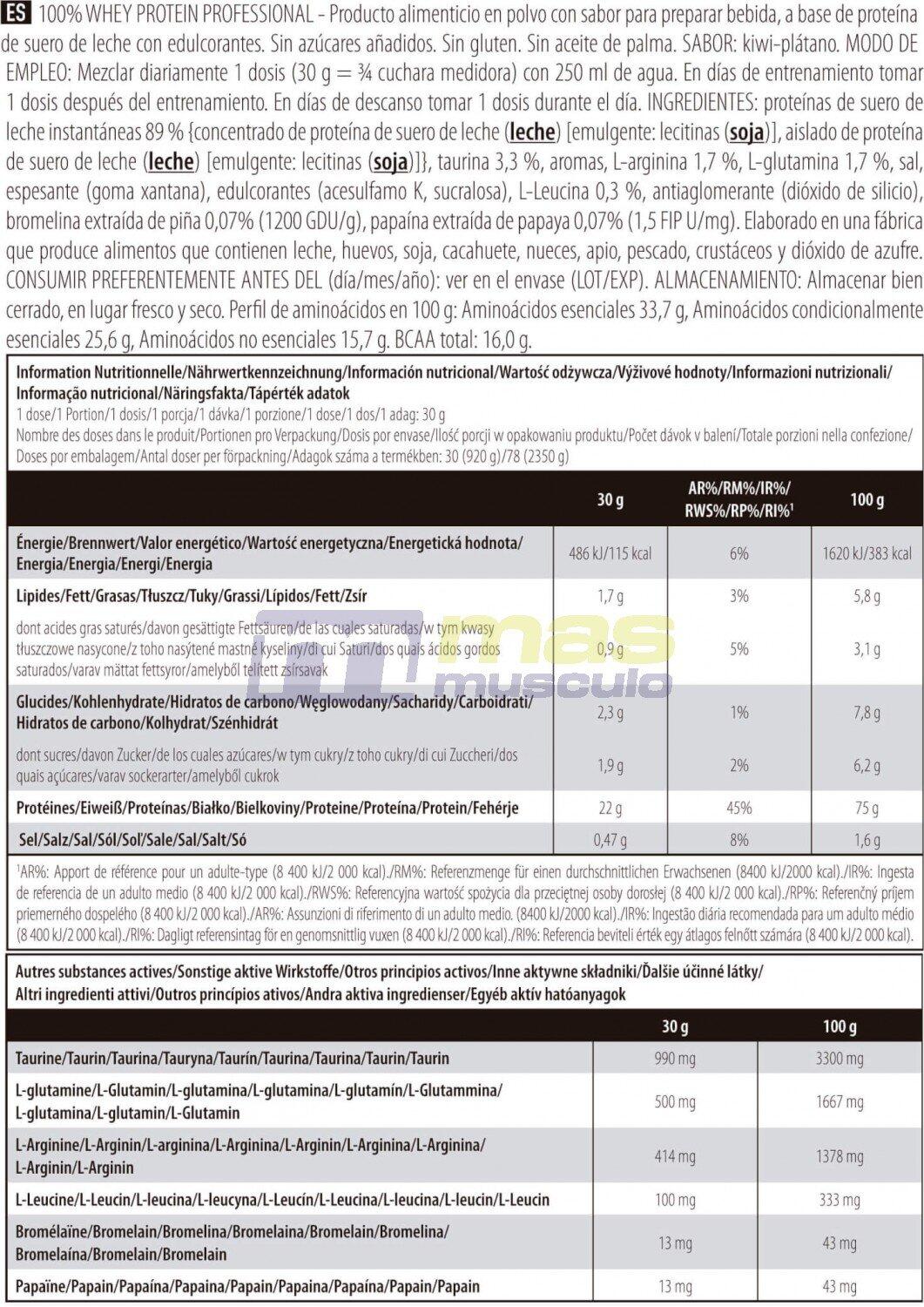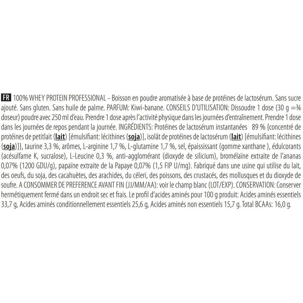 100% Whey Protein Professional from Scitec Nutrition is a high-quality protein blend based on whey isolate and whey concentrate. Dietary proteins provide nitrogen and essential amino acids, which the body needs for growth and tissue maintenance.As a result, the proteins present in 100% Whey Protein Professional contribute to the development and maintenance of muscle mass and skeletal health*Obtained from milk, 100% Whey Protein Professional is considered a complete protein, as it provides the body with all essential amino acids, including the 8 essential amino acids and BCAAs that the body is unable to synthesize and which must be supplied by the diet (Histidine, Isoleucine, Leucine, Lysine, Methionine, Phenylalanine, Threonine, Tryptophan, Valine).100% Whey Protein also contains other ingredients: an 'amino acid matrix', which provides other amino acids, namely L-leucine, L-glutamine and taurine, and a complex of two digestive enzymes, papain and bromelain.Its delicious taste, perfectly fluid texture and very low lactose content make 100% Whey Protein Professional one of the finest protein powders available today.100% Whey Protein Professional is used by all top athletes to build muscle mass while staying dry.Its 2.3kg format enables regular consumers to supplement their daily protein intake!Available in chocolate, vanilla, strawberry, banana, chocolate & coconut, strawberry & white chocolate, cappuccino, chocolate hazelnut, vanilla & red fruit, kiwi & banana, lemon cheescake, coconut, peanut butter, chocolate cookies, Café Glacé, Pistachio white chocolate.