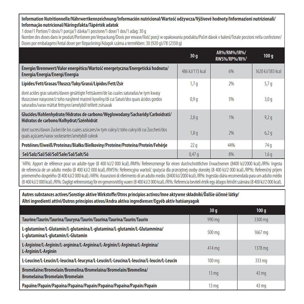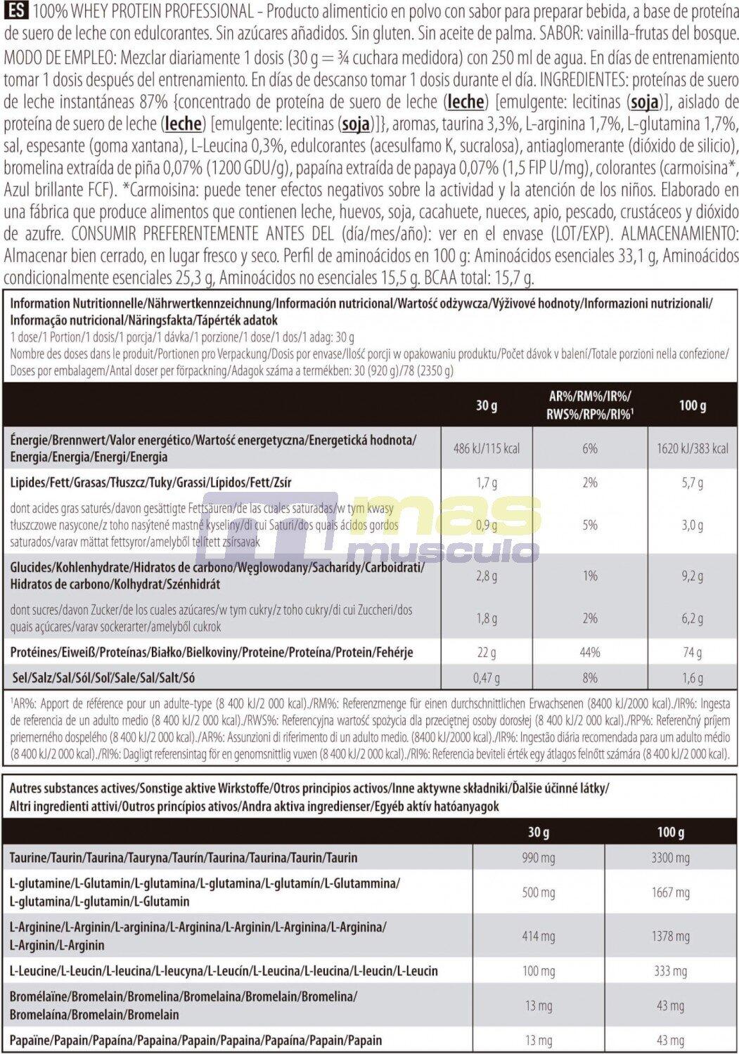 100% Whey Protein Professional from Scitec Nutrition is a high-quality protein blend based on whey isolate and whey concentrate. Dietary proteins provide nitrogen and essential amino acids, which the body needs for growth and tissue maintenance.As a result, the proteins present in 100% Whey Protein Professional contribute to the development and maintenance of muscle mass and skeletal health*Obtained from milk, 100% Whey Protein Professional is considered a complete protein, as it provides the body with all essential amino acids, including the 8 essential amino acids and BCAAs that the body is unable to synthesize and which must be supplied by the diet (Histidine, Isoleucine, Leucine, Lysine, Methionine, Phenylalanine, Threonine, Tryptophan, Valine).100% Whey Protein also contains other ingredients: an 'amino acid matrix', which provides other amino acids, namely L-leucine, L-glutamine and taurine, and a complex of two digestive enzymes, papain and bromelain.Its delicious taste, perfectly fluid texture and very low lactose content make 100% Whey Protein Professional one of the finest protein powders available today.100% Whey Protein Professional is used by all top athletes to build muscle mass while staying dry.Its 2.3kg format enables regular consumers to supplement their daily protein intake!Available in chocolate, vanilla, strawberry, banana, chocolate & coconut, strawberry & white chocolate, cappuccino, chocolate hazelnut, vanilla & red fruit, kiwi & banana, lemon cheescake, coconut, peanut butter, chocolate cookies, Café Glacé, Pistachio white chocolate.