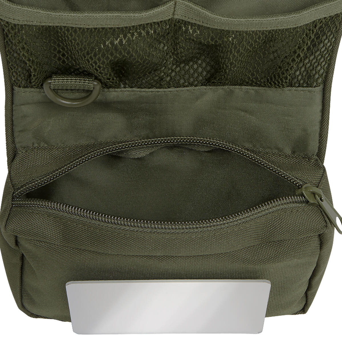 This Medium Toiletry Bag from Brandit made of robust 600DEN polyester material is extremely lightweight and can be easily folded into a small and compact bag. It comes with two zipped compartments, two elasticated mesh pockets and detachable mirror. In addition, the bag features a rotating plastic hook for hanging up, internal D-ring, quick release buckle closure and a durable carry handle on the top. The Brandit Toiletry Bag Medium is an ideal choice for ravelling, camping, hiking or any other outdoor activity.