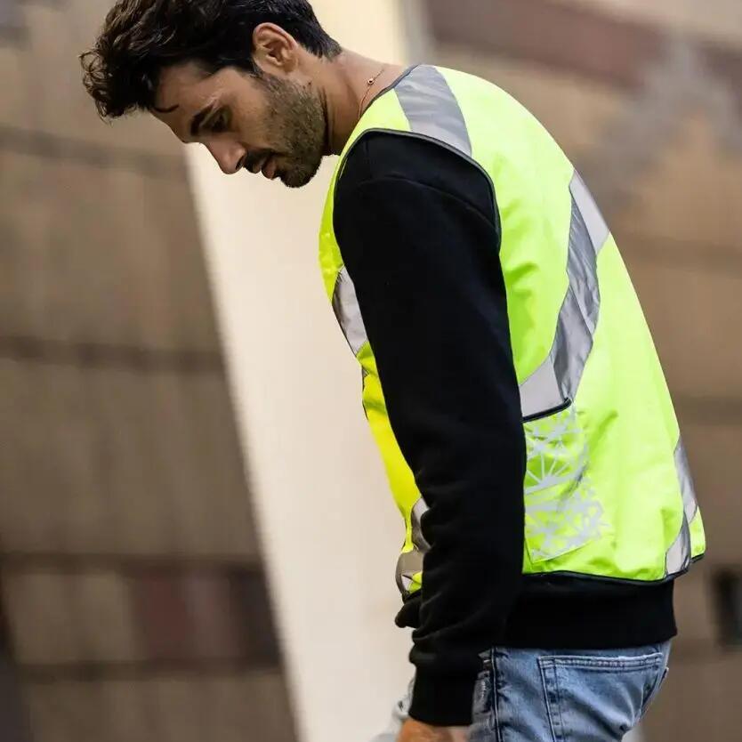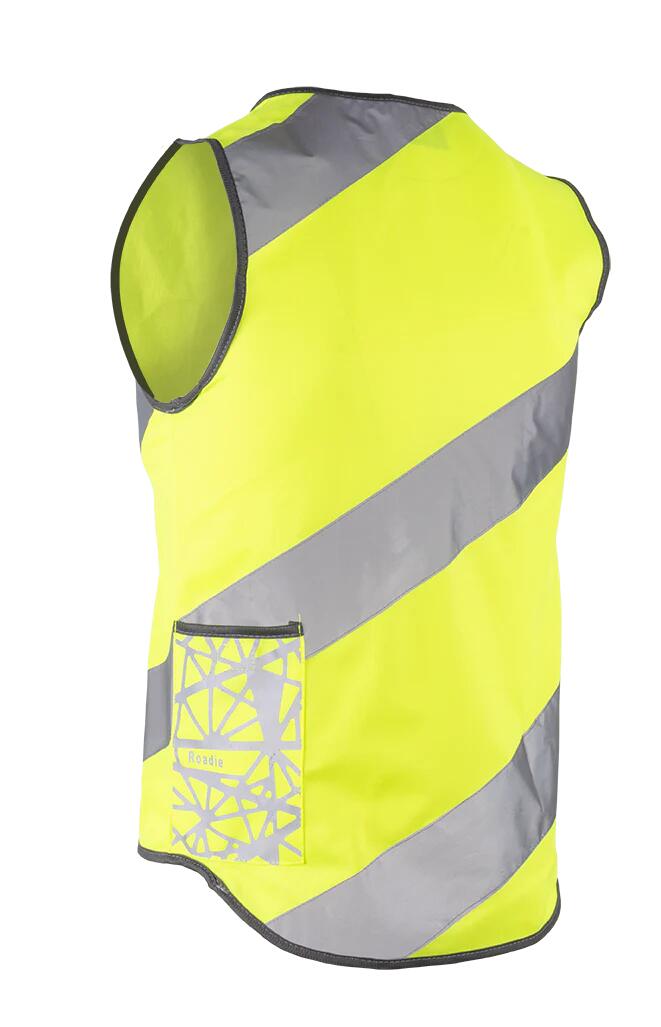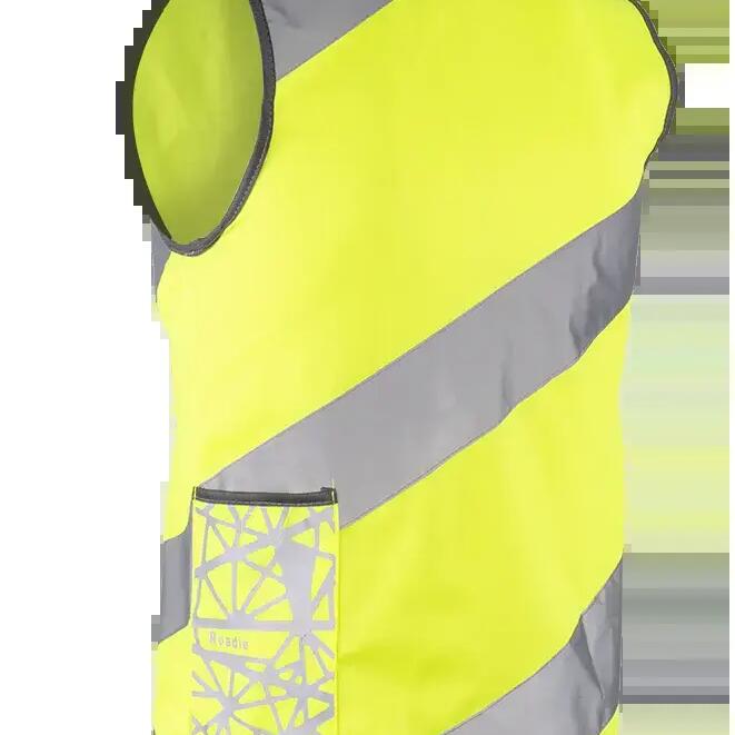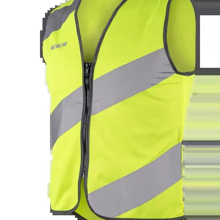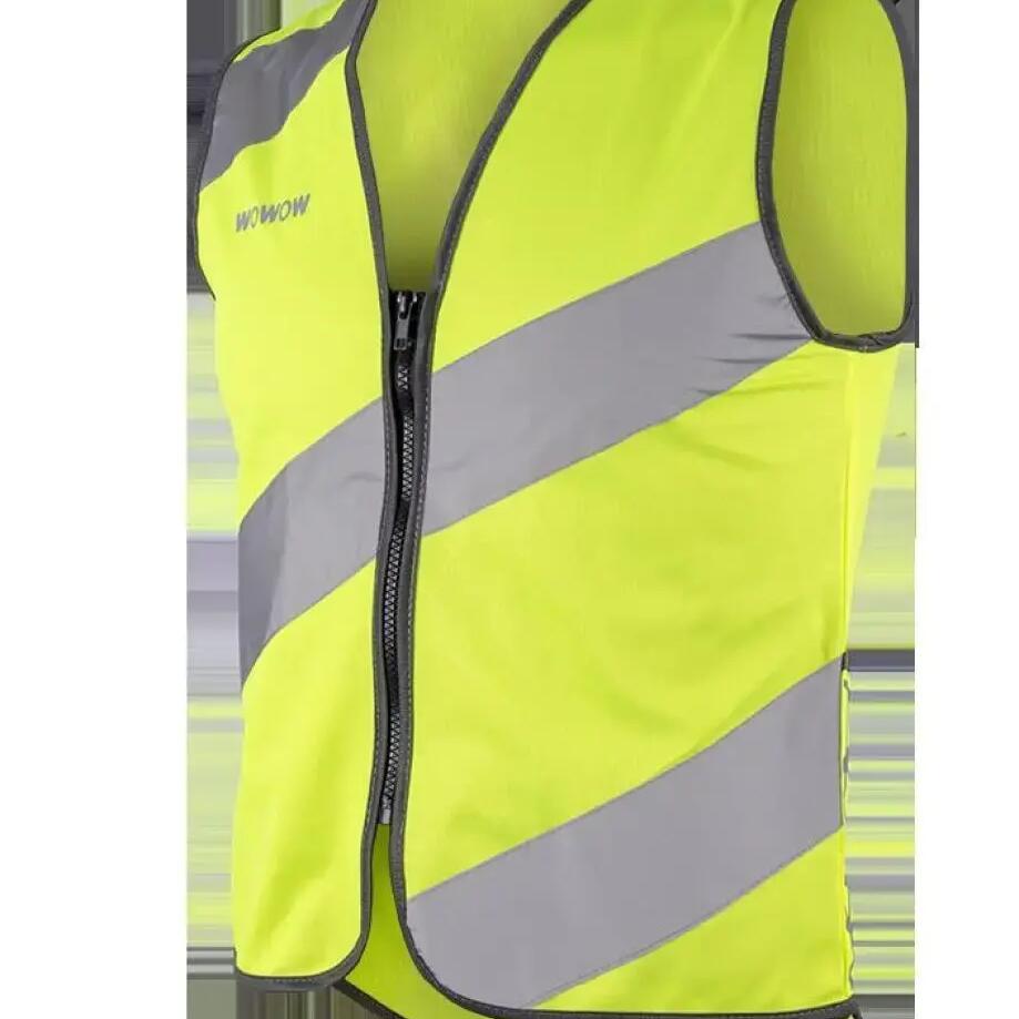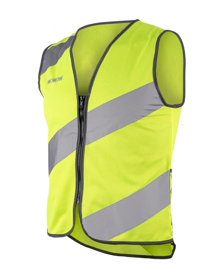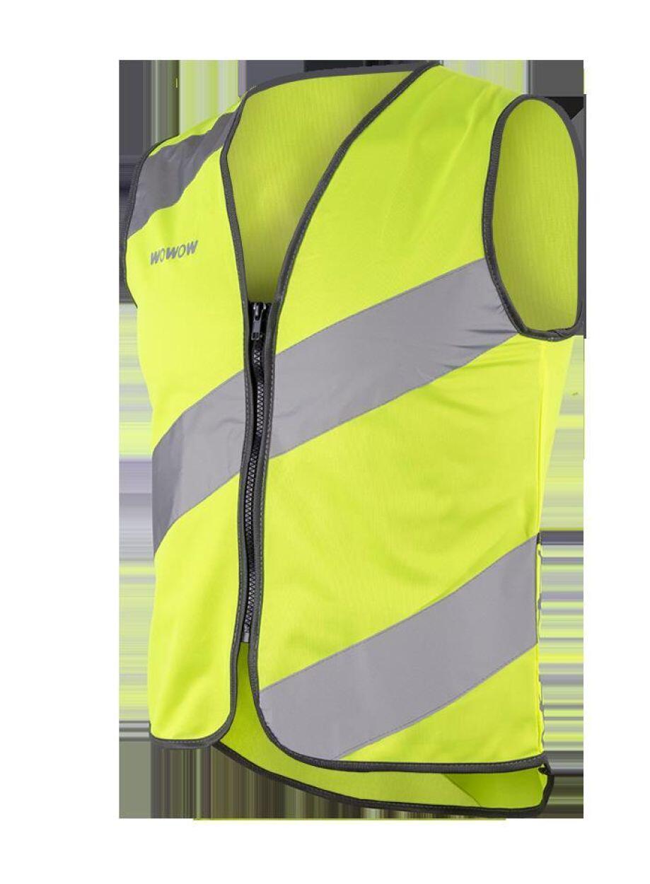 Wowow Roadie reflective safety vest, fluorescent yellow, XXL — reflective bands front and back, front zip, extended rear.