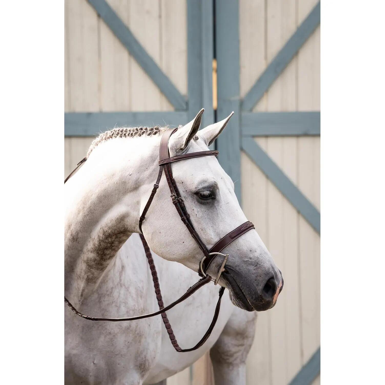 Discover the comfort and elegance of the Dy'on Hunter bridle for your horse - ideal for riding with its wide, anatomic noseband.