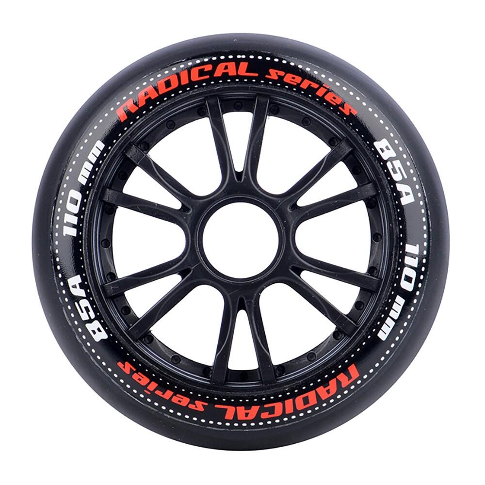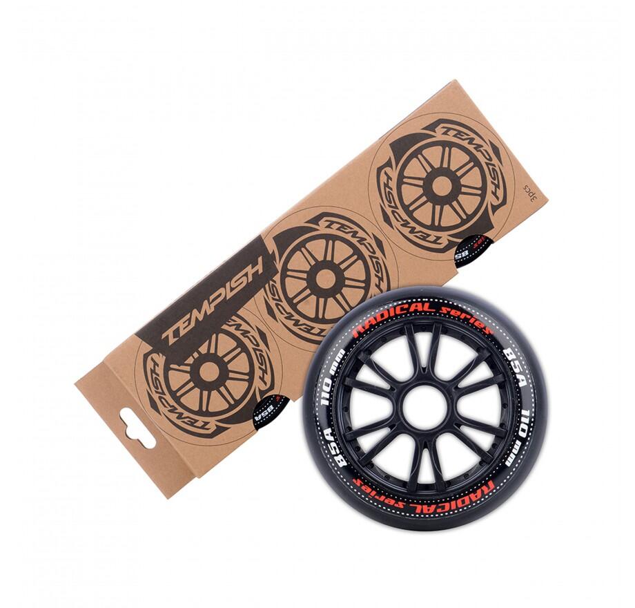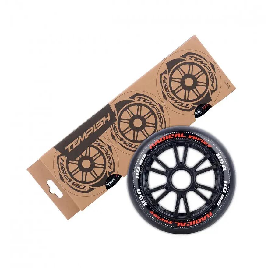 De Tempish Radical 84A wielen worden geleverd in een set van 4 stuks en zijn perfect voor skaters die op zoek zijn naar comfort en duurzaamheid. Dankzij de combinatie van lage rolweerstand en uitstekende demping bieden deze wielen een soepele rijervaring op verschillende ondergronden.Comfortabele en soepele rit op elk terreinDeze wielen zijn ontworpen met het oog op prestaties en rijcomfort. De 72mm diameter zorgt voor goede wendbaarheid terwijl de 84A hardheid een ideale balans biedt tussen grip en snelheid. Oneffenheden in het wegdek worden moeiteloos geabsorbeerd.Duurzaamheid en lage rolweerstandDe Radical wielen staan bekend om hun lange levensduur en minimale slijtage. Ze bieden uitstekende prestaties bij dagelijks gebruik en behouden hun vorm en eigenschappen zelfs na intensief skaten.Voordelen72mm diameter voor wendbaarheid en controle84A hardheid voor grip en snelheidExtreem lage rolweerstand voor efficiënt rijdenLange levensduur door slijtvast materiaalGoede demping van oneffen oppervlakkenGeleverd in een set van 4 stuksOnderhoud en adviesControleer regelmatig de wielen op slijtage en vervang ze indien nodig om optimale prestaties te behouden. Reinig de wielen na gebruik voor een langere levensduur en bewaar ze op een droge plek. Combineer met goed onderhouden lagers voor een soepele rit.