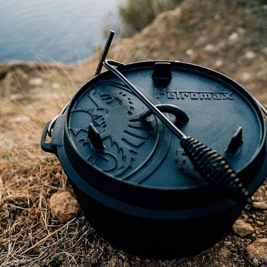 Safely lift hot cast iron lids with the Petromax Dutch Oven Lid Lifter – sturdy, heat-resistant, and built for secure handling over fire, grill, or stove