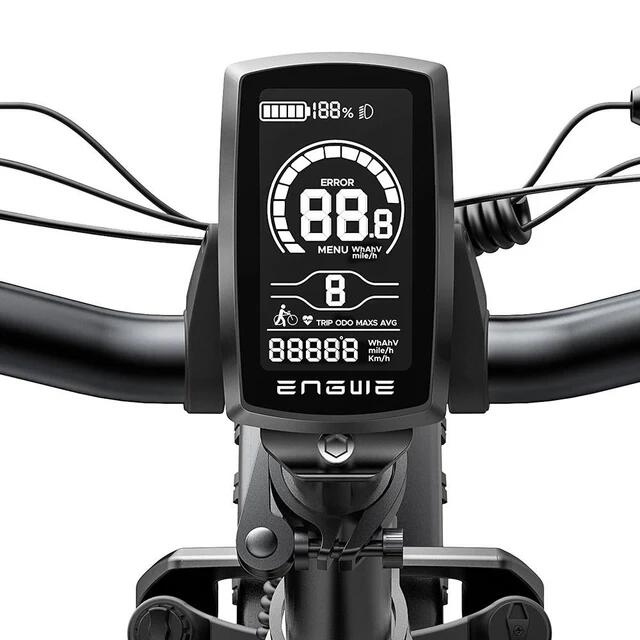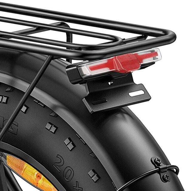Folding electric bicycle with a range of 120 km and a maximum speed of 25 km/h, featuring front suspension.