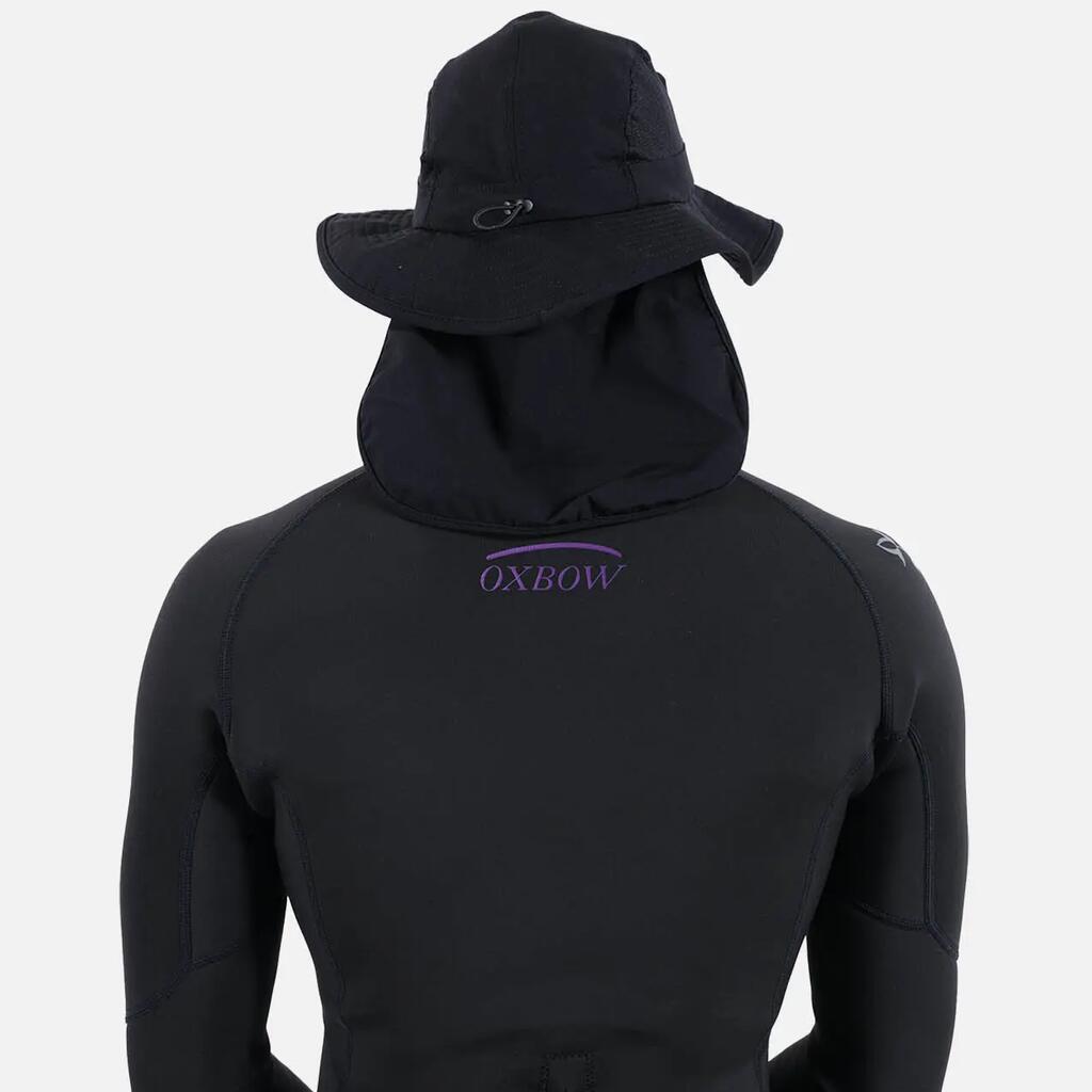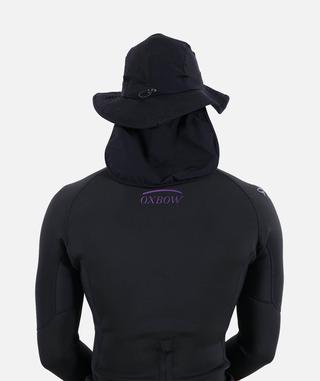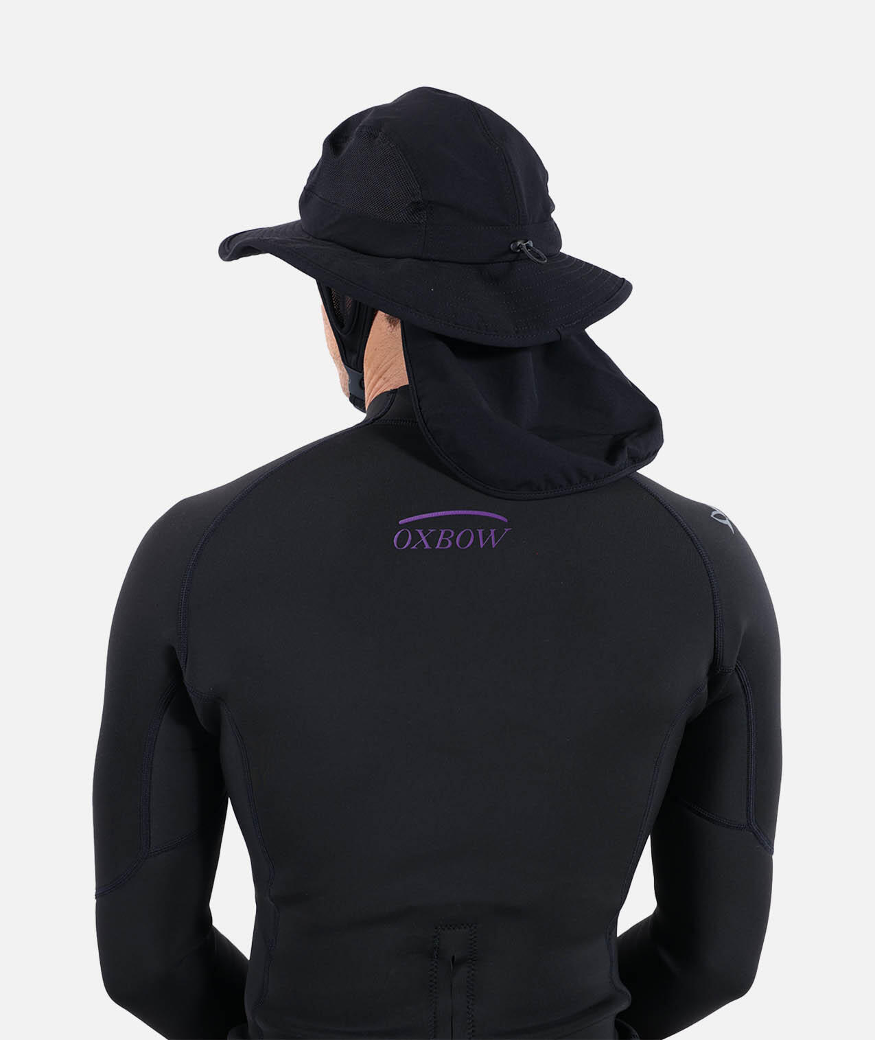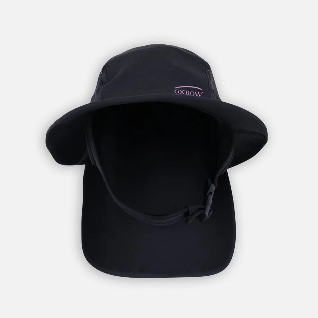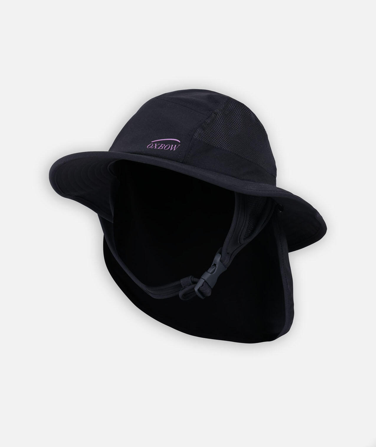 Light surf hat with neoprene chin strap, quick-drying, mesh panels for water drainage, reinforced visor, and UV 50+ protection.