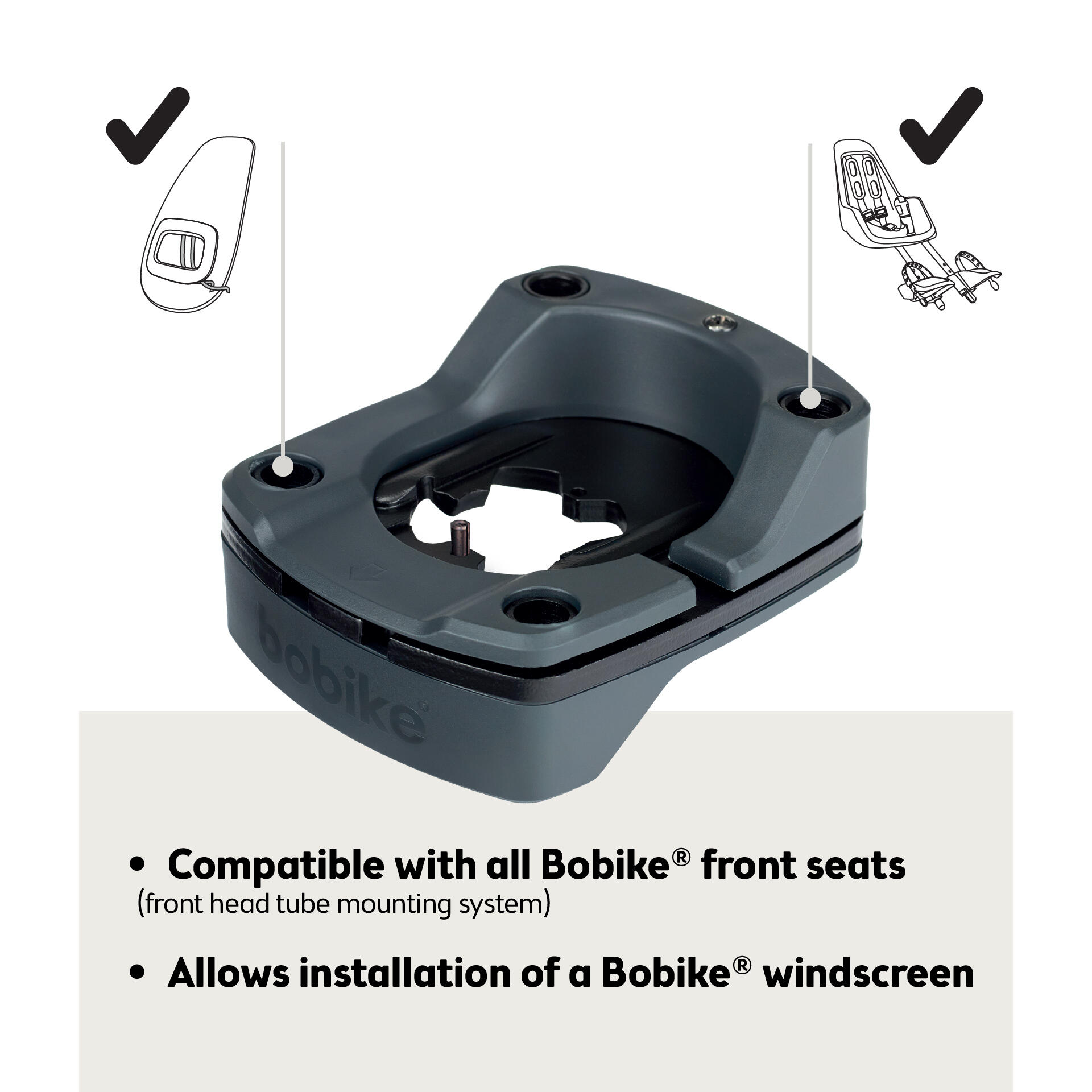 Bobike A-head Adapter Plus – Front Child Seat Mount for A-Head Stems on Bikes With Standard or Integrated Cables, Fits All Bobike Mini Front Seats, Requires Only 5mm / 0.19” Installation Space