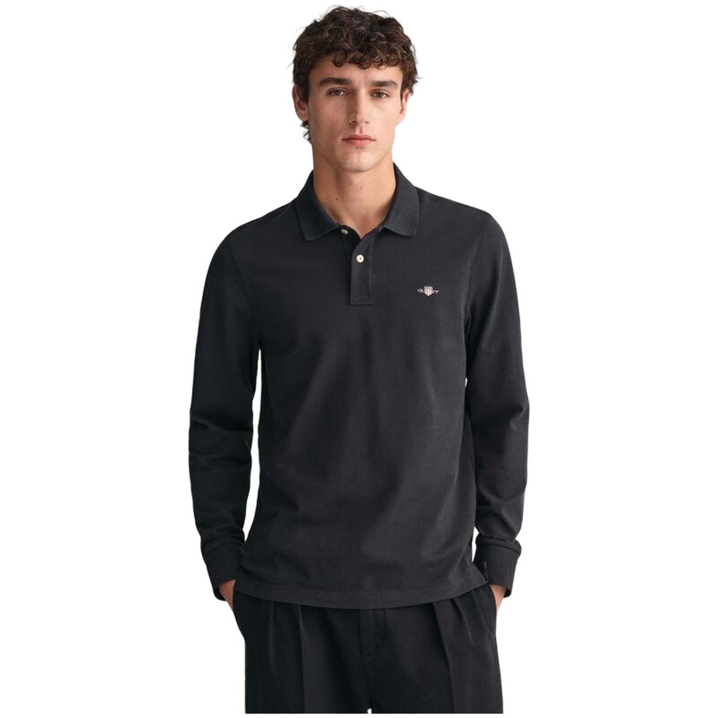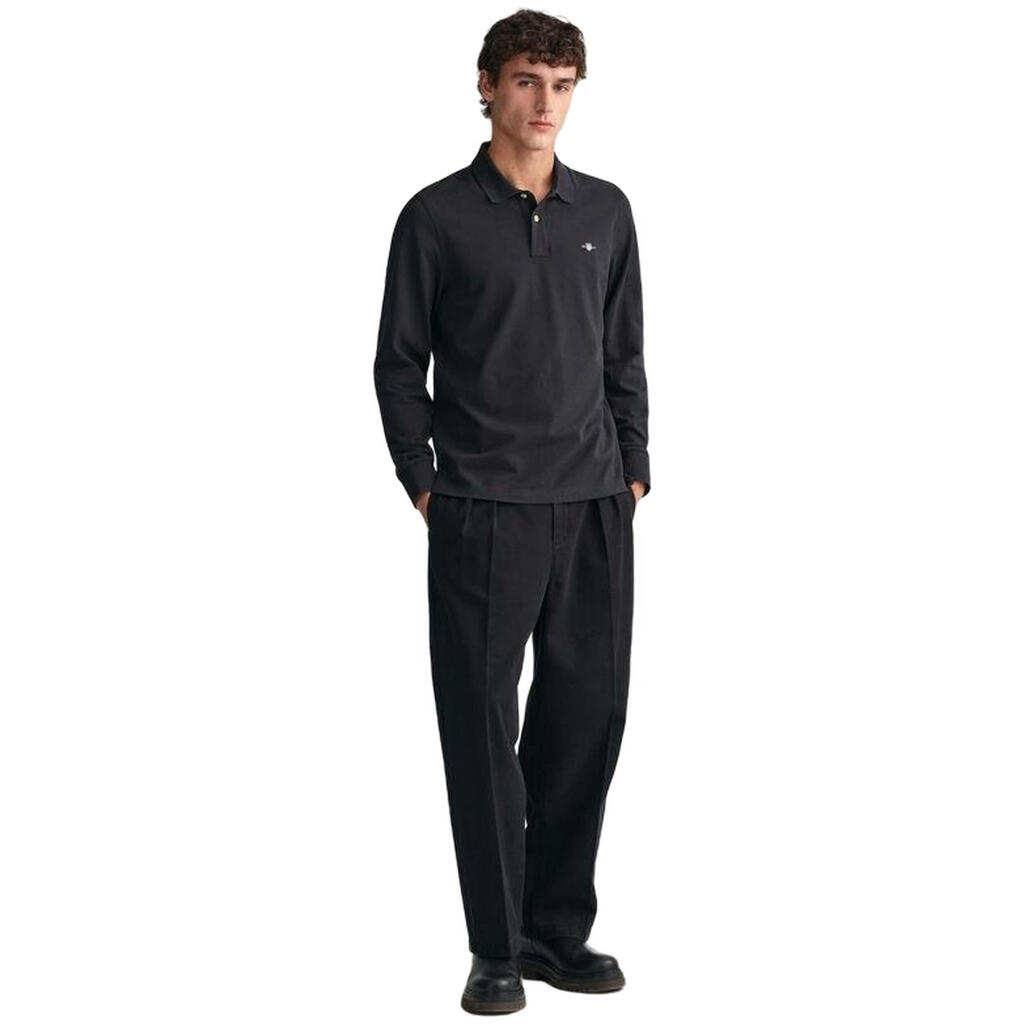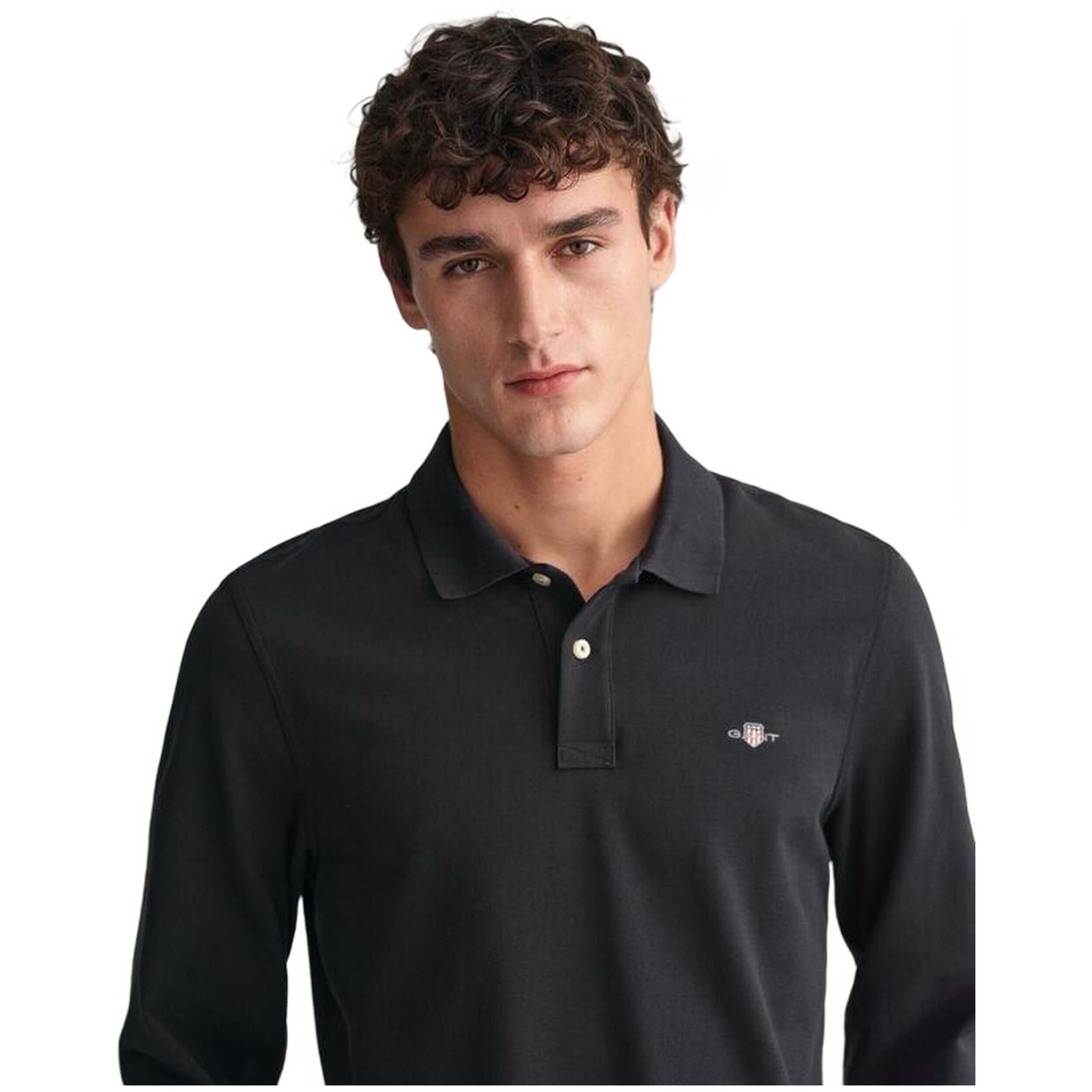 Long sleeve polo Gant for Man in black from the Fall-Winter 2023 season.