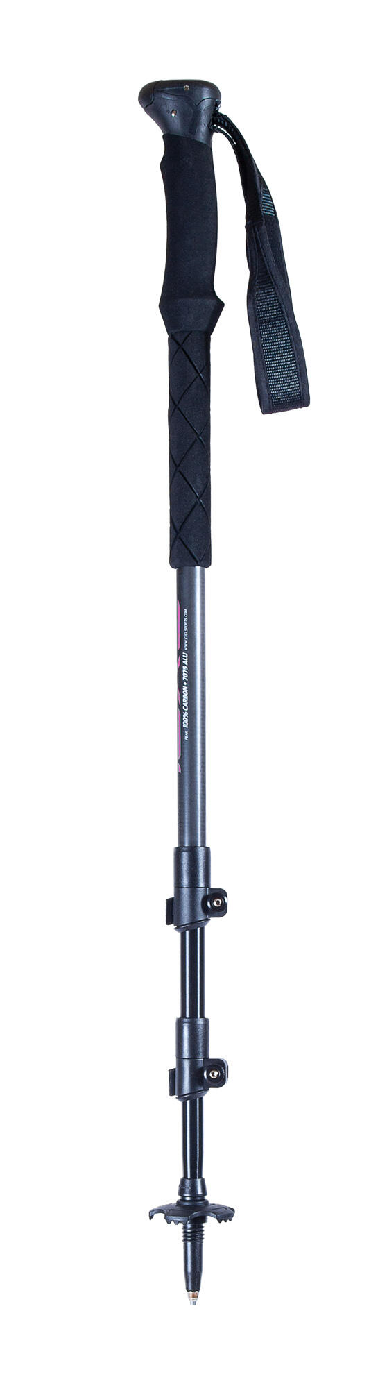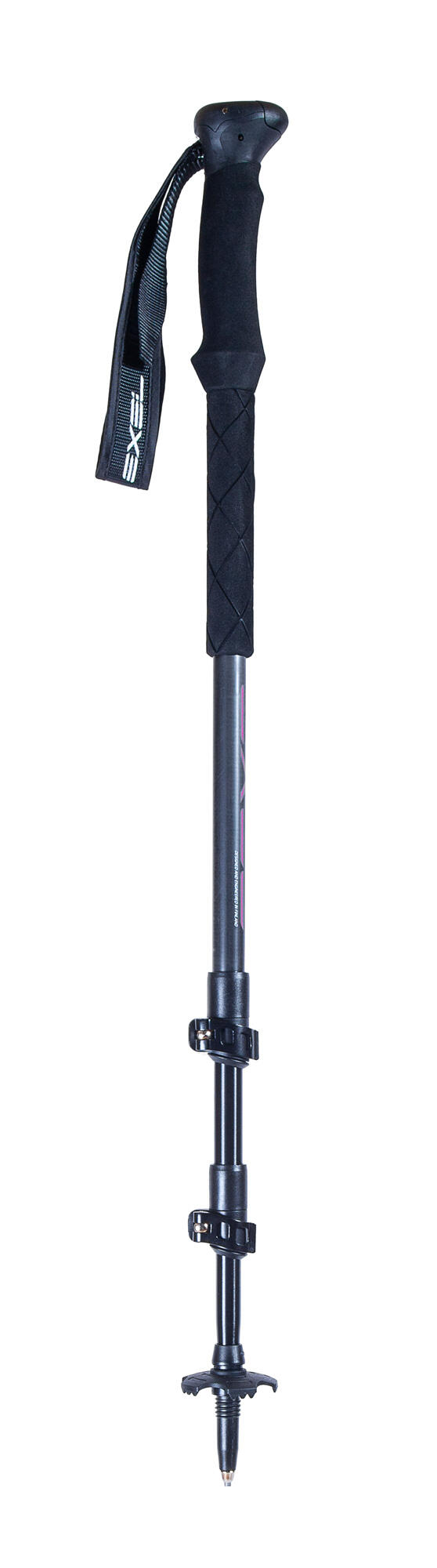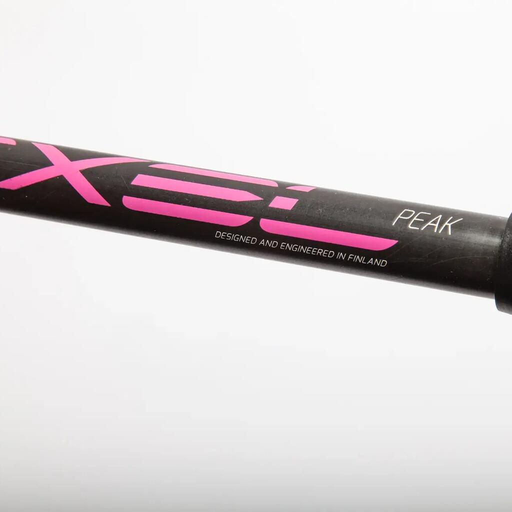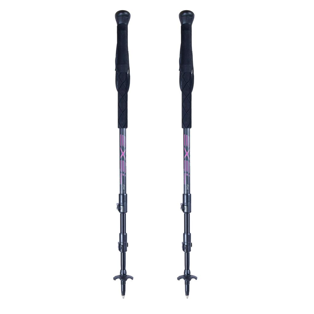 EXEL PEAK poles are three-section hiking poles designed for venturing off the beaten track. Made from 100% carbon fiber in the upper section and 7075 aluminum in the two lower sections, these poles are a reliable companion for day hikes, treks, and mountain adventures. Easy to handle and adjust, it features lightweight and durable QLocks for improved and reliable adjustment. In addition to its comfortable strap, it is equipped with a new double-grip rubber handle with ventilation channels on the lower handle for greater comfort and sweat wicking. - 60cm folded - Adjustable from 100 to 135 cm - Long, breathable, moisture-wicking, and non-slip handle - Weight 255g per pole - Quick-lock aluminum adjustment - 50 mm basket included #### Sold in pairs