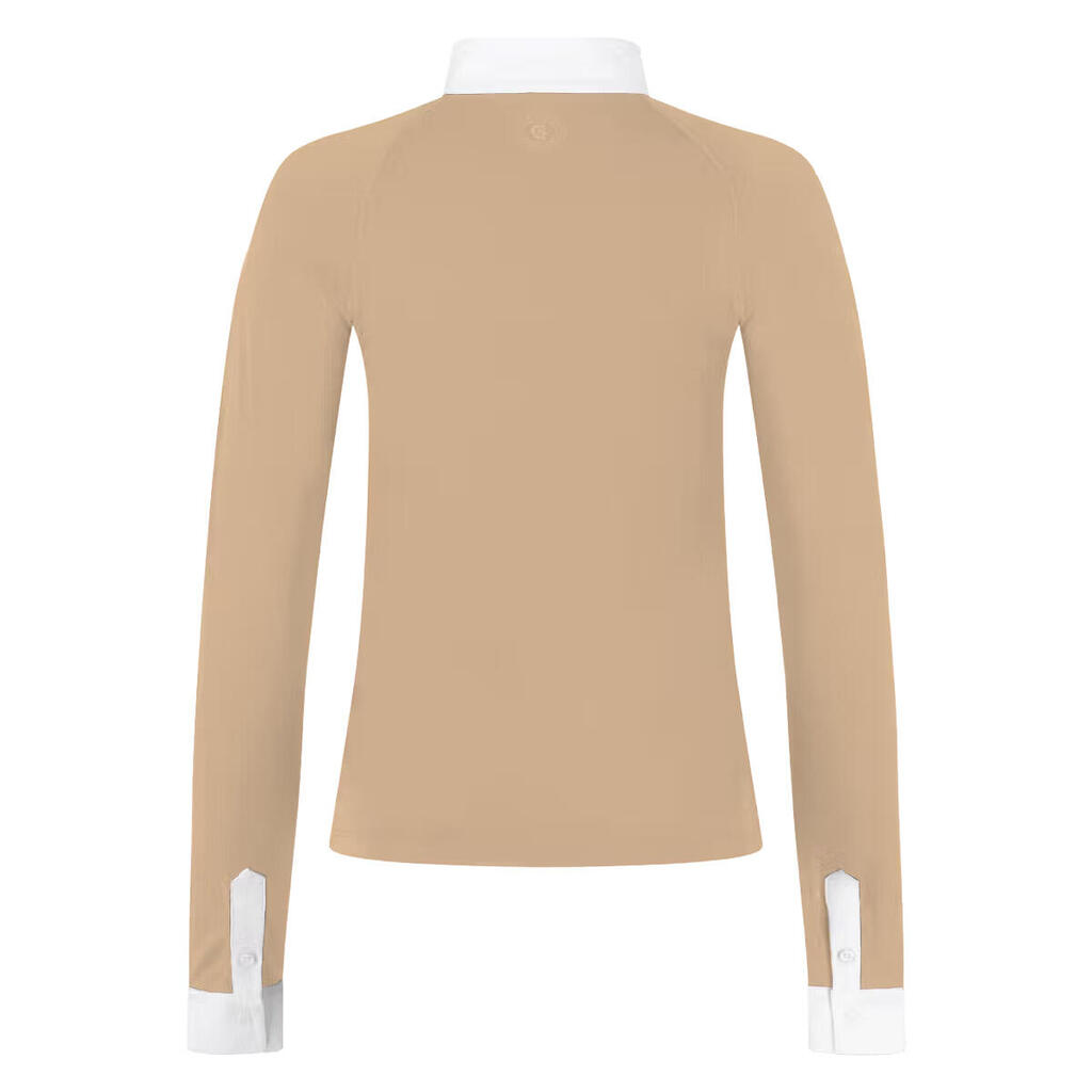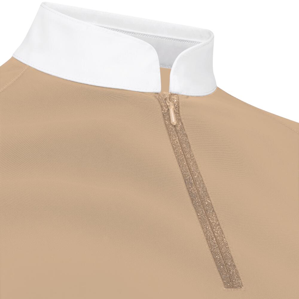Show shirt women classic with glitter zipper long sleeve beige size 36