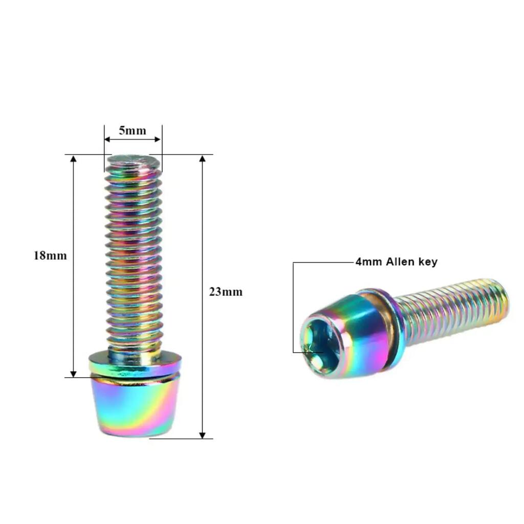 Bike stem bolts 6 pack M5 alloy steel 10B21 4 mm hex multicolour