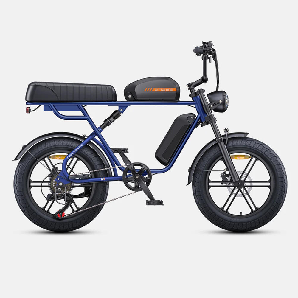 The Engwe M1 e-bike features a spacious dual seat, designed for two people, ensuring comfort on shared rides. Its ergonomic design provides excellent support for both the rider and passenger. Thanks to an advanced dual-suspension system, this bike effectively absorbs impacts, offering a smooth ride whether in the city or exploring rough trails.