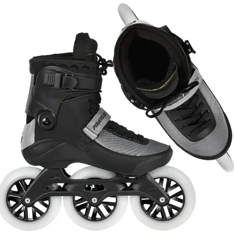 The word 'revolutionary' is often uttered, but few skates live up to the hype. The POWERSLIDE Swell Nite 125 is a revolutionary fitness inline skate that not only lives up to the hype, but redefines what revolutionary really means when it comes to inline skates. The shell is made of lightweight, durable fiberglass, and MYFIT 's new patented 3DAP technology is made of molded polyurethane, molding perfectly to your foot and offering a level of control and comfort never before experienced on skates from fitness. The SWELL Nite 125 features a new semi-transparent, abrasion-resistant upper that conforms to the shape of your foot while protecting it and enhancing your safety at night with reflections. POWERSLIDE has developed a new way of making skates from a single material. This advance allows us to design new shapes and features, including air channels to improve breathability and the addition of extra padding on the ankle, tongue and insole. Designed around the renowned TRINITY 3-point binding system, the Swell Nite 125 has a low center of gravity that offers excellent stability and better power transfer with every stride. The TRINITY system also lets you adjust the position of your frame so you can get the most out of your training sessions and improve your skating performance. The Swell Nite 125 from POWERSLIDE features a Elite cast frame, made from ultra-léger magnesium , mounted on Undercover Raw 125mm high-performance Ultra-High Rebound (UHR) urethane wheels, and WICKED freespin ABEC 9 chromed steel bearings, giving you a smooth, rapide ride that will take your workouts to a new level. Includes a height-adjustable brake system (HABS brake).