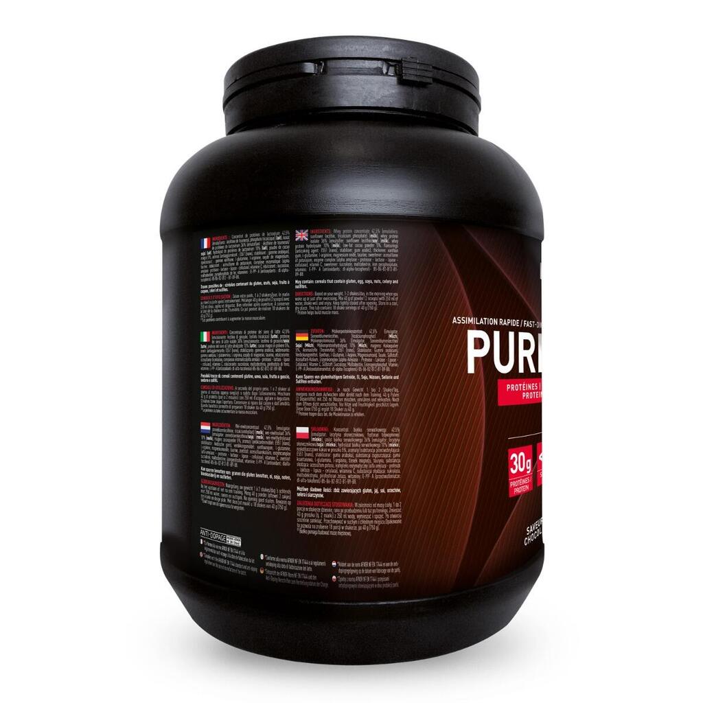Pure whey (85g) is a laboratory-formulated product manufactured by Eafit, designed to be low in sugar. It has been specially developed to meet the specific needs of athletes seeking to build muscle mass. Each serving contains 31g of protein. Combined with a protein-rich diet, it will help you maintain and increase your muscle mass.Pure Whey is mainly made from concentrate, a type of protein offering excellent value for money. It stands out for its rapid assimilation and is enriched with digestive enzymes that facilitate its absorption.This formula is very complete, with acomplex amino acid profile including the essential amino acids(histidine, lysine, isoleucine, leucine, valine, methionine, phenylalanine, threonine and tryptophan), as well as alanine, glutamic acid, glycine, proline, serine, tyrosine and arginine. With no less than 112.1 g ofamino acids per 100 g, Pure Whey supports muscle building, repair and recovery, as well as energy supply.What's more, this protein is enriched with vitamins and minerals, including B vitamins, calcium, phosphorus, potassium, magnesium and iron. These nutrients are essential for normal body function, cognitive function and physical performance.In short, Pure Whey is a complete protein, available in three delicious flavours: Vanilla, Chocolate Hazelnut and Double Chocolate.