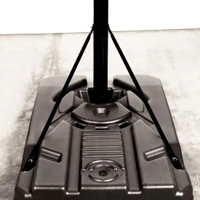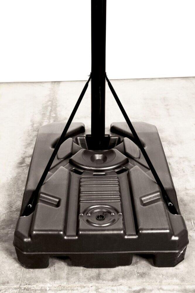 Choose the Houston basketball hoop if you are looking for a high-quality basketball hoop with the official basketball dimensions for an adult game. The pole is conveniently height adjustable from 225 to 305 cm. The adjustable steel frame has a diameter of no less than 60 mm and is equipped with reinforcing brackets for extra sturdiness. The black powder coating matches nicely with the stylish Houston backboard. Select the desired height and via the secure locking mechanism the hoop stays firmly at height. The large black base can be filled with water or sand for extra stability during play. Thanks to the built-in black transport wheels, you can easily move the pole, even when filled with water or sand.