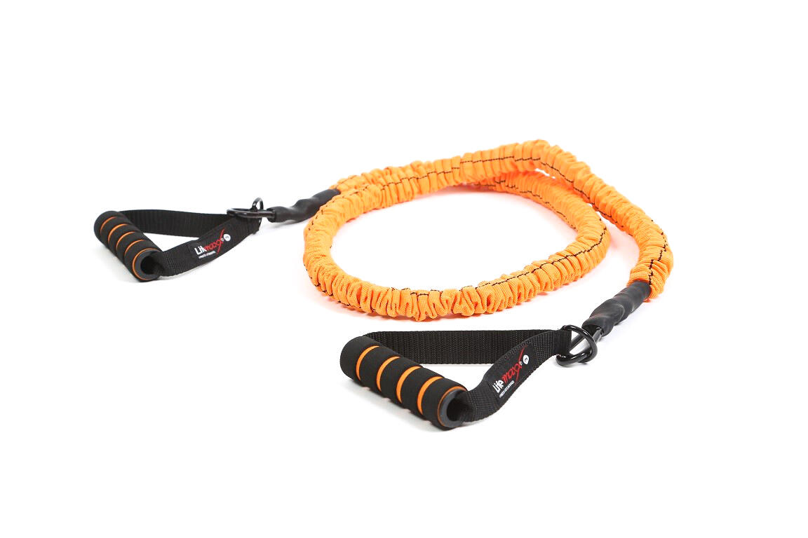The Lifemaxx Power Tubes are extra strong and therefore suitable for heavier body shaping. These power tubes have a canvas protection for the latex tube and the handles are attached via carabiner hooks. Intensive exercises can be done with them, provided you perform the right exercise.