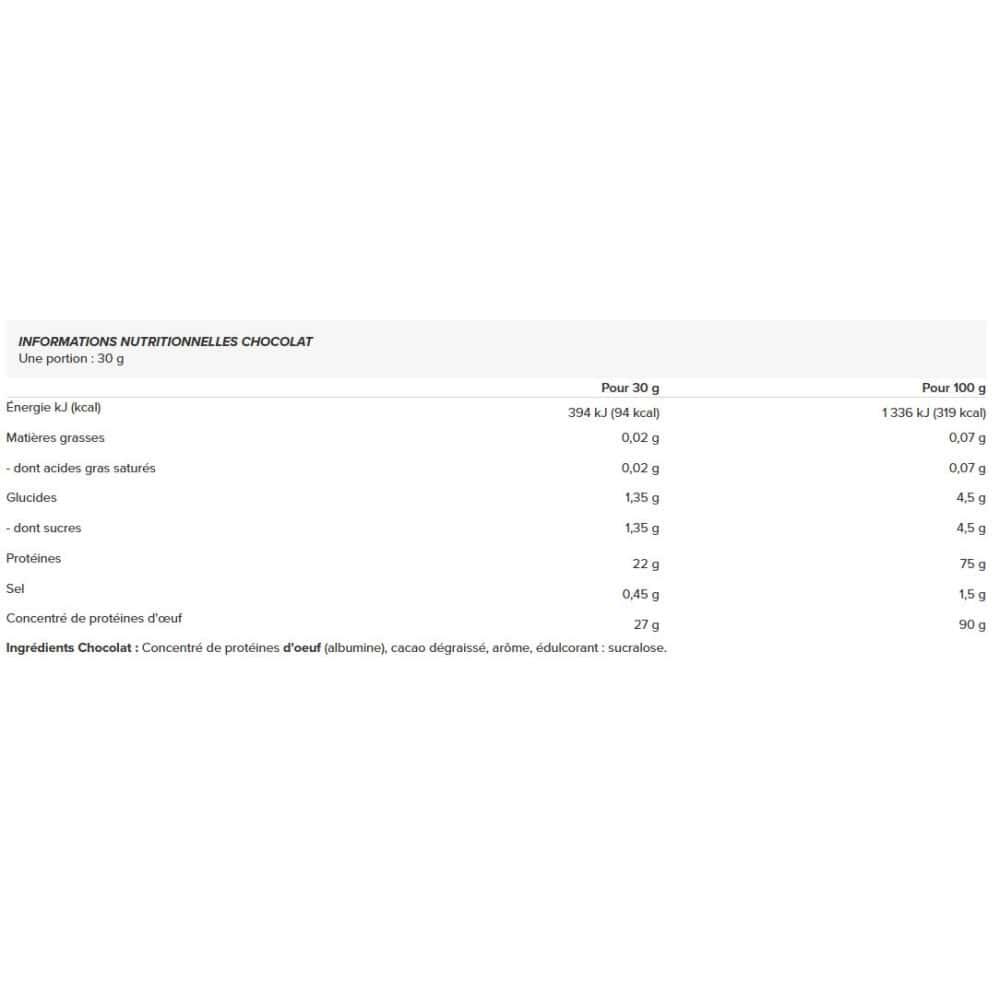 Egg White Protein (510g) is a high-quality protein made from 100% egg white concentrate, developed by Allnutrition. Ideal for people intolerant to whey protein, it is an excellent alternative to supplement your protein intake.With 24 g of protein per portion, Egg White Protein helps maintain and develop muscle mass, while promoting optimal recovery after exercise.With no aspartame or added sugars, this protein offers a healthy option with only 94 kcal per serving (depending on flavor) and less than 2 g of sugar. Its 100% egg origin makes it a perfect solution for people with lactose intolerance. It's an ideal alternative to traditional milk-derived proteins, as well as to vegetable proteins often characterized by a particular texture.Rich in essential amino acids, this protein stands out for its excellent amino acid profile and high biological value, ideal for supporting muscle growth. Its remarkable solubility makes preparation quick and easy.Available in two delicious flavours: Vanilla and Chocolate.