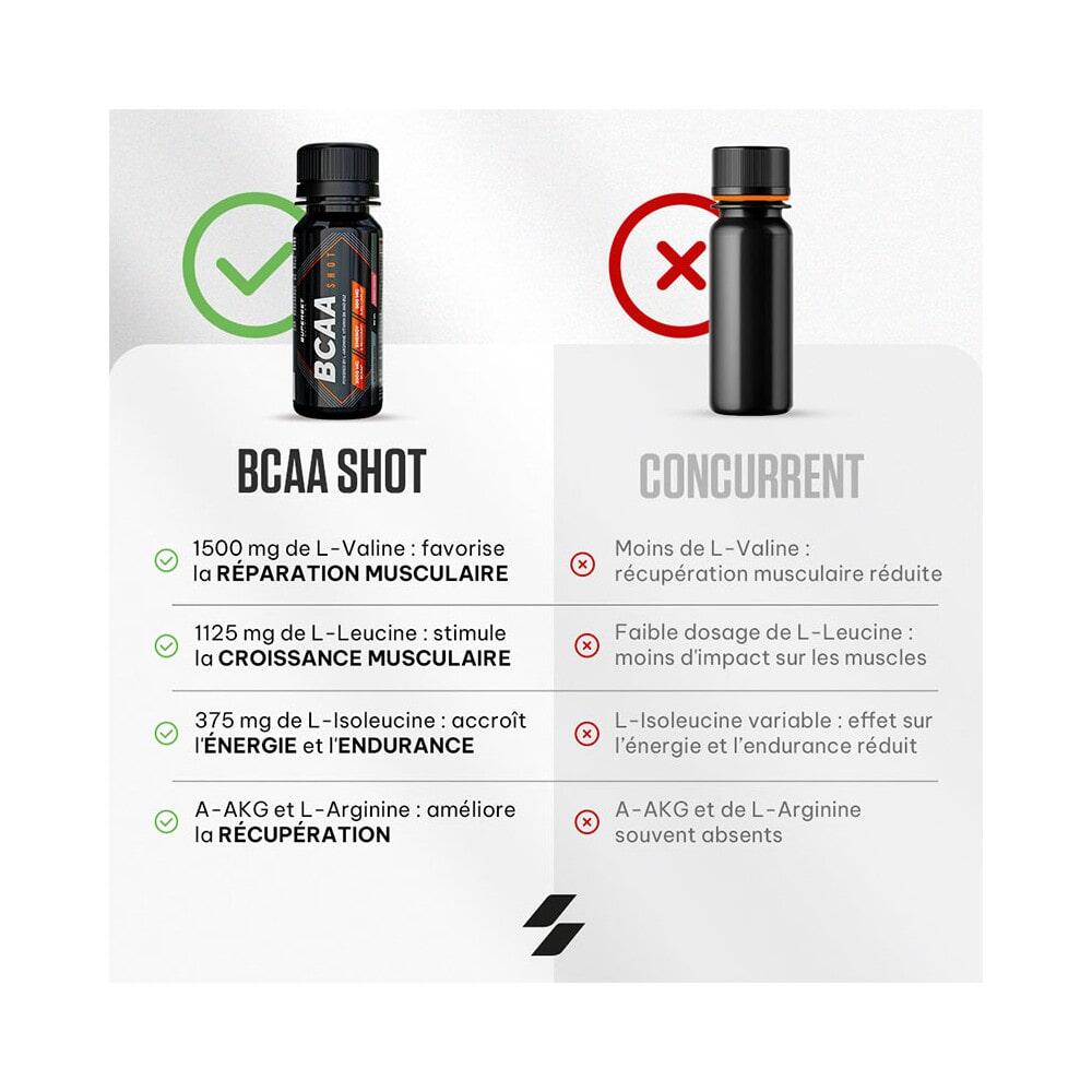 Enhance your performance with BCAA shot (12X60ML), enriched with L-arginine and B vitamins to help reduce fatigue during training.