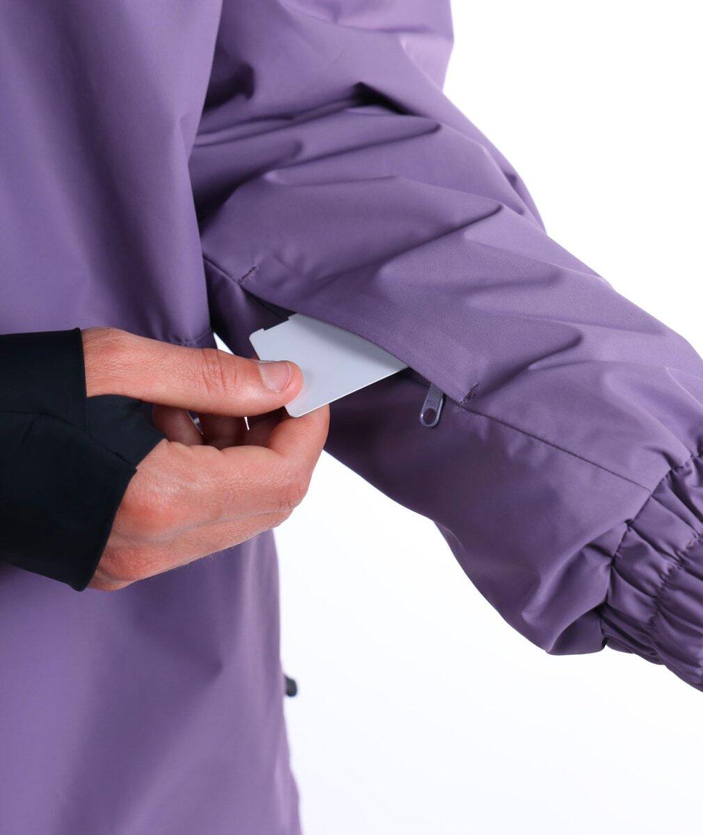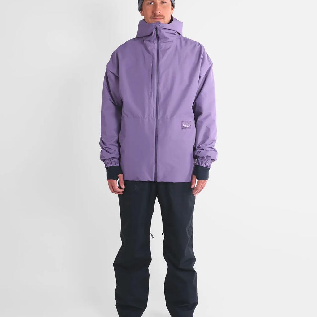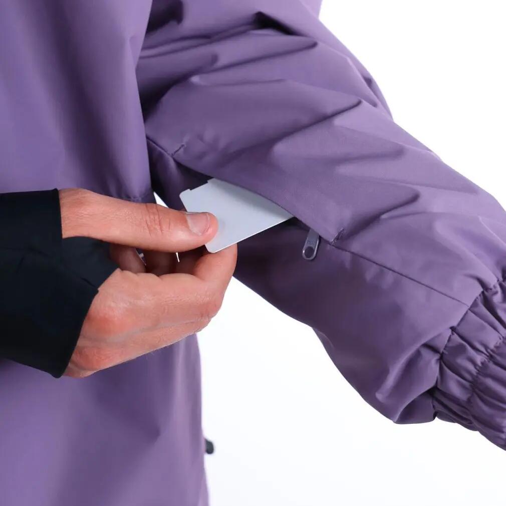 Technical jacket made from recycled materials, featuring a breathable and waterproof membrane, with a PFC-free water-repellent treatment.