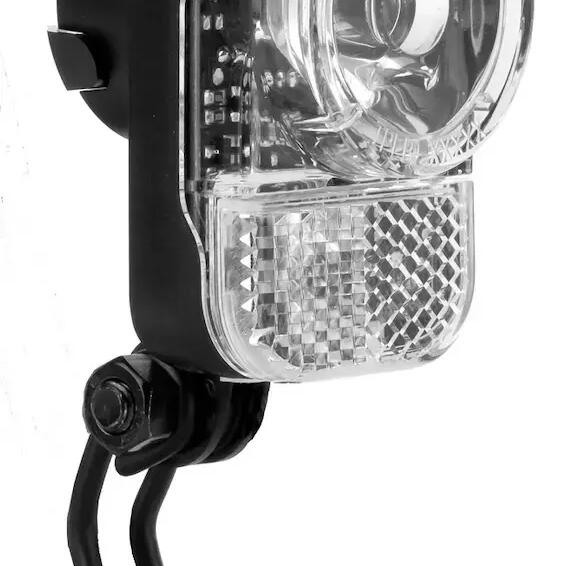 Compact 30 Lux front light for 6 - 42 V e-Bikes. Also compatible with dynamos. Optical light distribution with clear lens technology for good side visibility