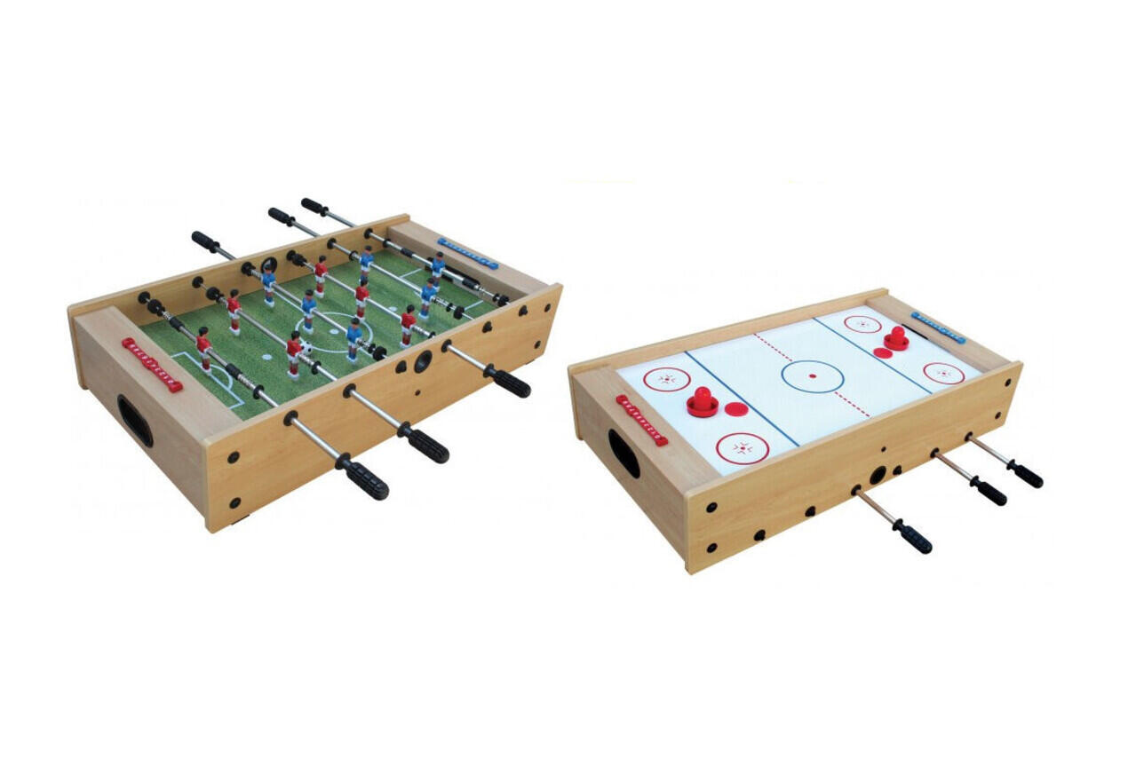 The F-Mini 2 in 1 Foosball and Air Hockey table is specially designed for younger children. It offers the possibility to play foosball and air hockey on the floor or on a dining table. The game table is suitable for children up to 8 years old and is ideal for training eye-hand coordination and improving reaction time. Enjoy hours of fun with friends and family during a little tournament!