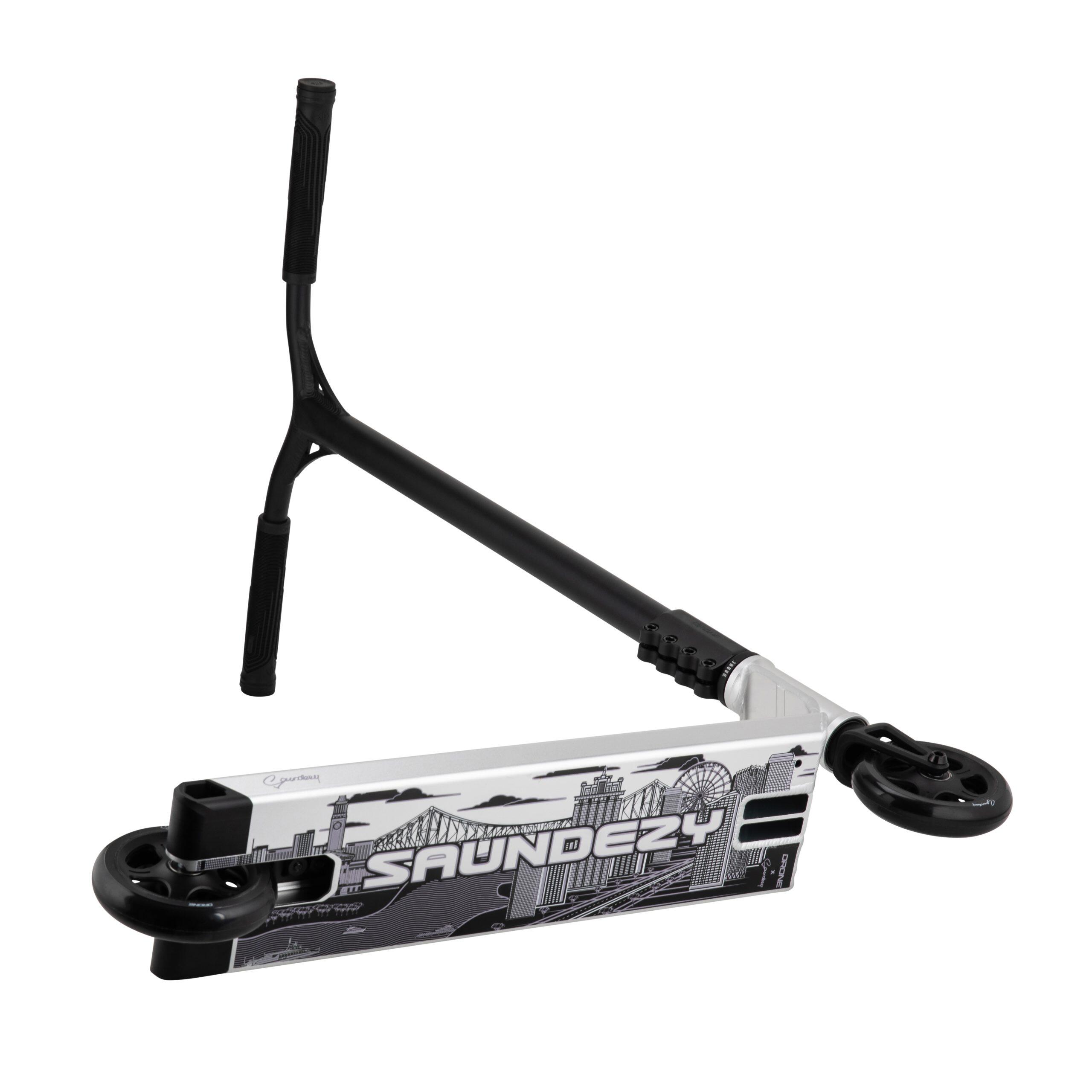 Discover the DRONE Kai Saunders 'Saundezy' Signature Scooter: performance and style combined. Designed for pros, it combines lightweight and durability in an anodized silver finish.