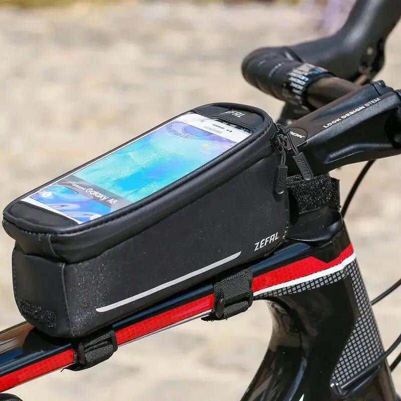 Discover the Zefal Console Pack T1 2-in-1 frame bag with smartphone holder and rain cover. Practical and waterproof for all your bike trips.