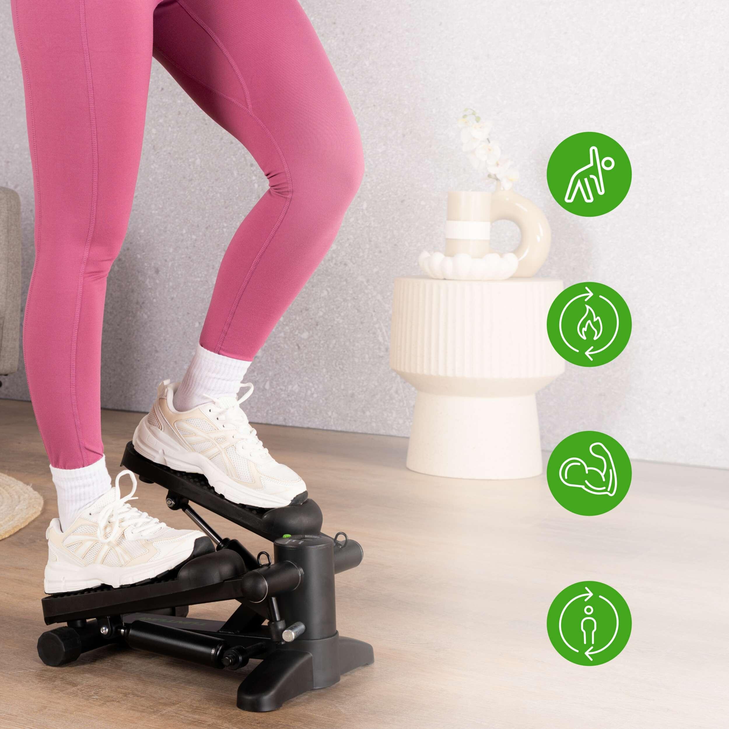 The Tunturi Stepper simulates stair climbing, activating multiple muscle groups at the same time. Your thighs, hamstrings, and glutes particularly benefit from this vertical movement. Ideal for those who have limited space but want great results.