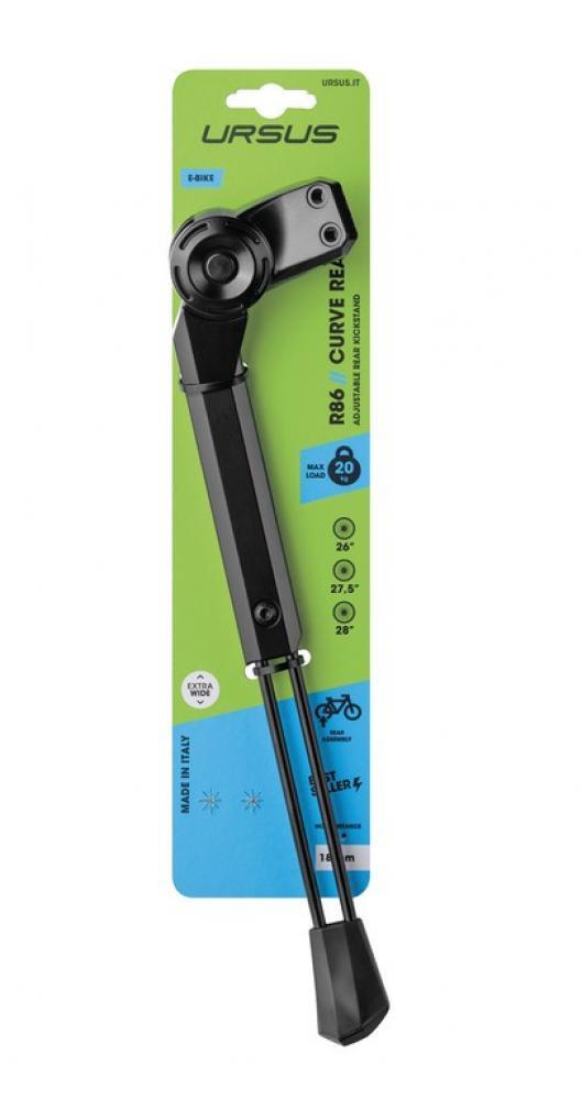 Optimize your urban cycling with the adjustable side stand Ursus Curve made from high-quality aluminium. Suitable for various bike sizes.