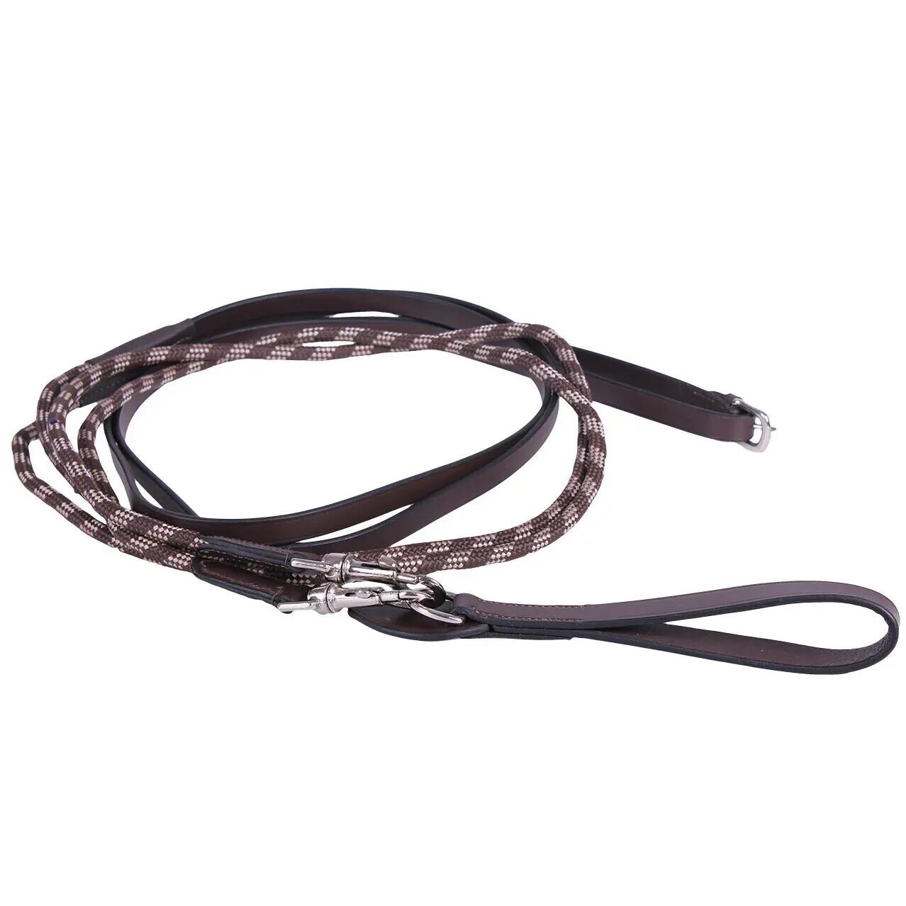 German horse reins QHP Luxe - In leather with stainless steel buckles and elegant two-tone cord trim.