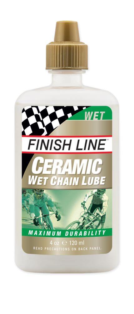 Enhance your cycling performance with the Finish Line Ceramic Wet lubricant for ultra-smooth and long-lasting drivetrain!
