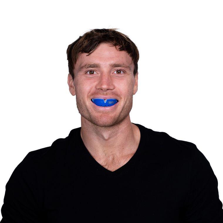 Enjoy superior comfort and protection with the OPRO Silver blue adult mouthguard, designed for all contact sports and precise fit around teeth and gums.