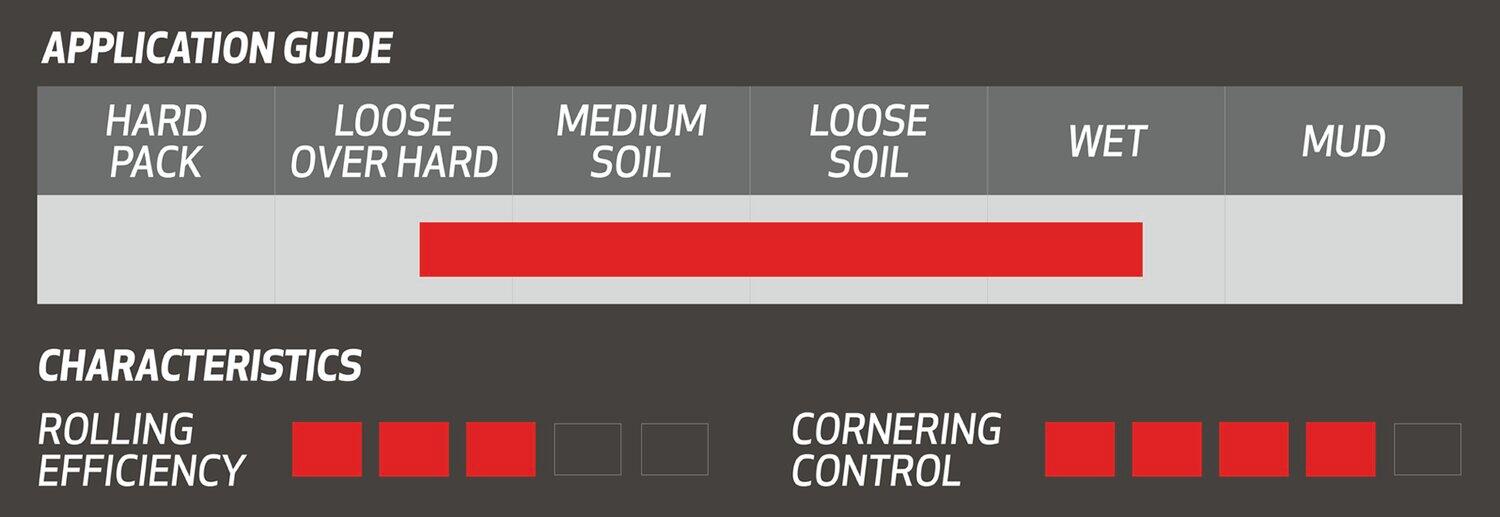 - Versatile All-Mountain MTB tyre designed for loose and wet terrain with a **wide and open** tread profile.