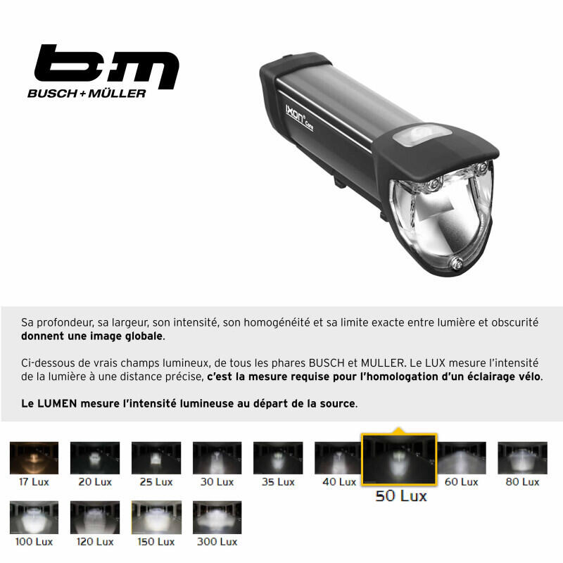 Headlight IXON Core 50 lux - recharge USB noir Busch & Müller Ixon Core 50 Lux