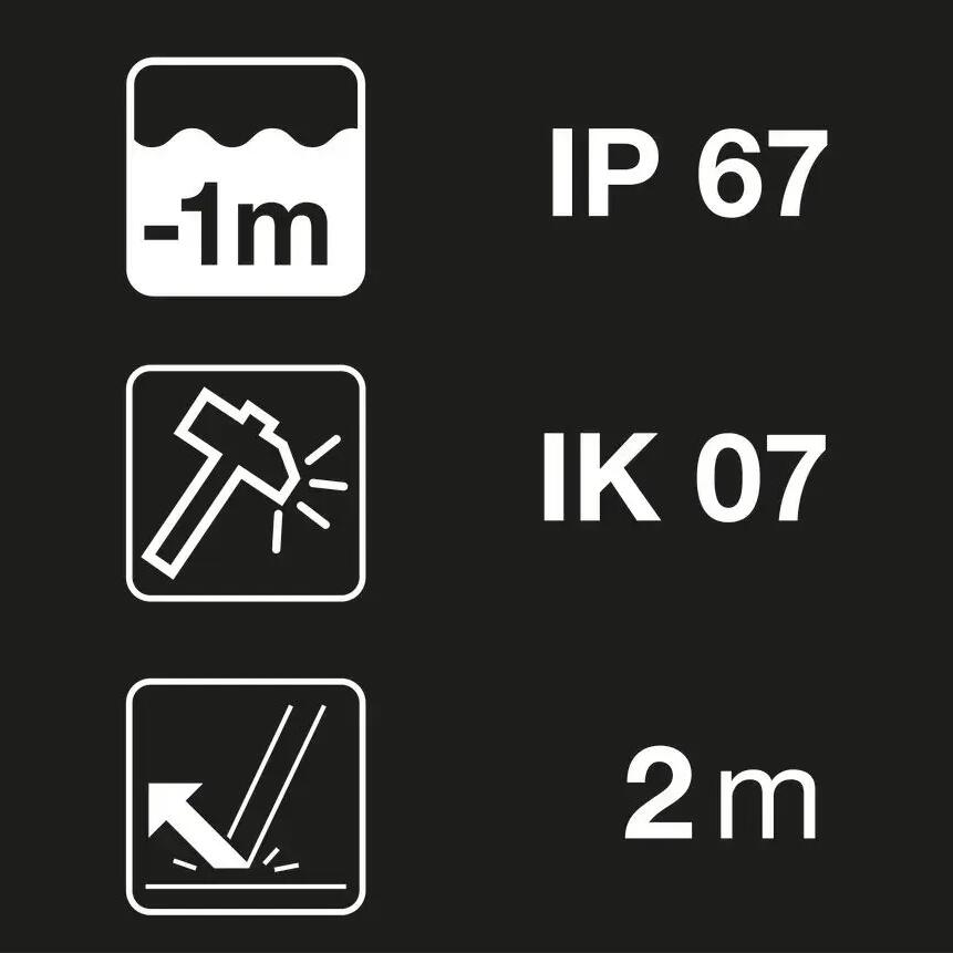 - robust construction: the lamp withstands shocks (IK07) and drops (up to 2 meters),