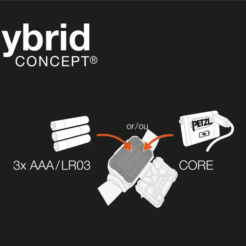 - supplied with the rechargeable CORE battery, ARIA® 2R is also compatible with three AAA/LR03 batteries (not included), thanks to the HYBRID CONCEPT design,