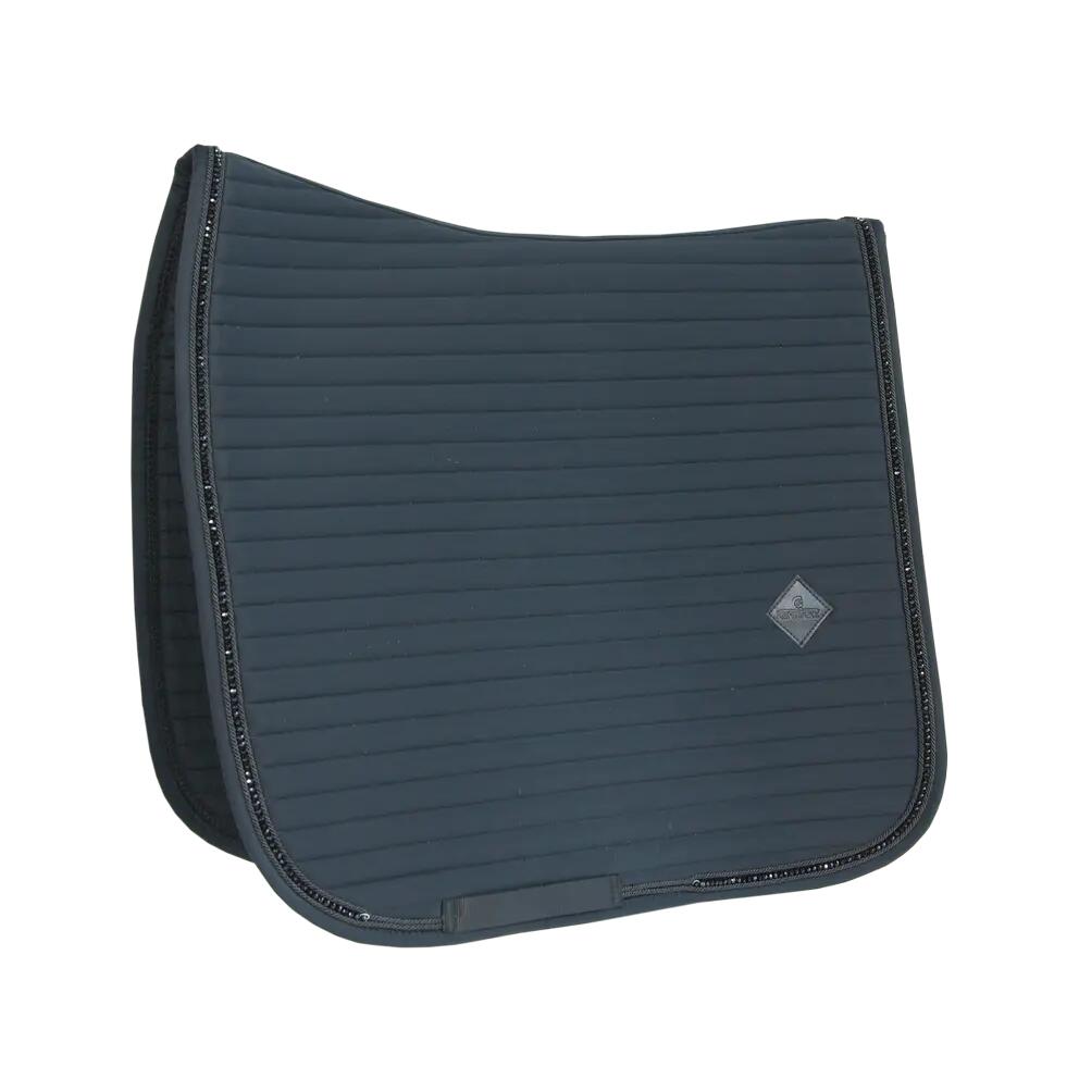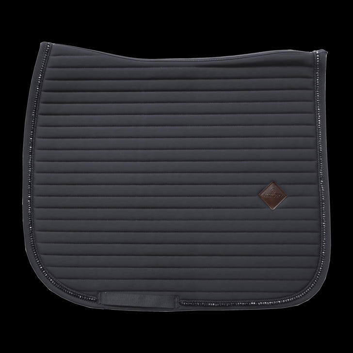 The stunning piping of this Saddle Pad Pearls is a real eye-catcher! ,Horizontal quilting ,Pearl piping ,No saddle straps ,only girth straps ,Subtle leather logo ,Room to embroider What’s