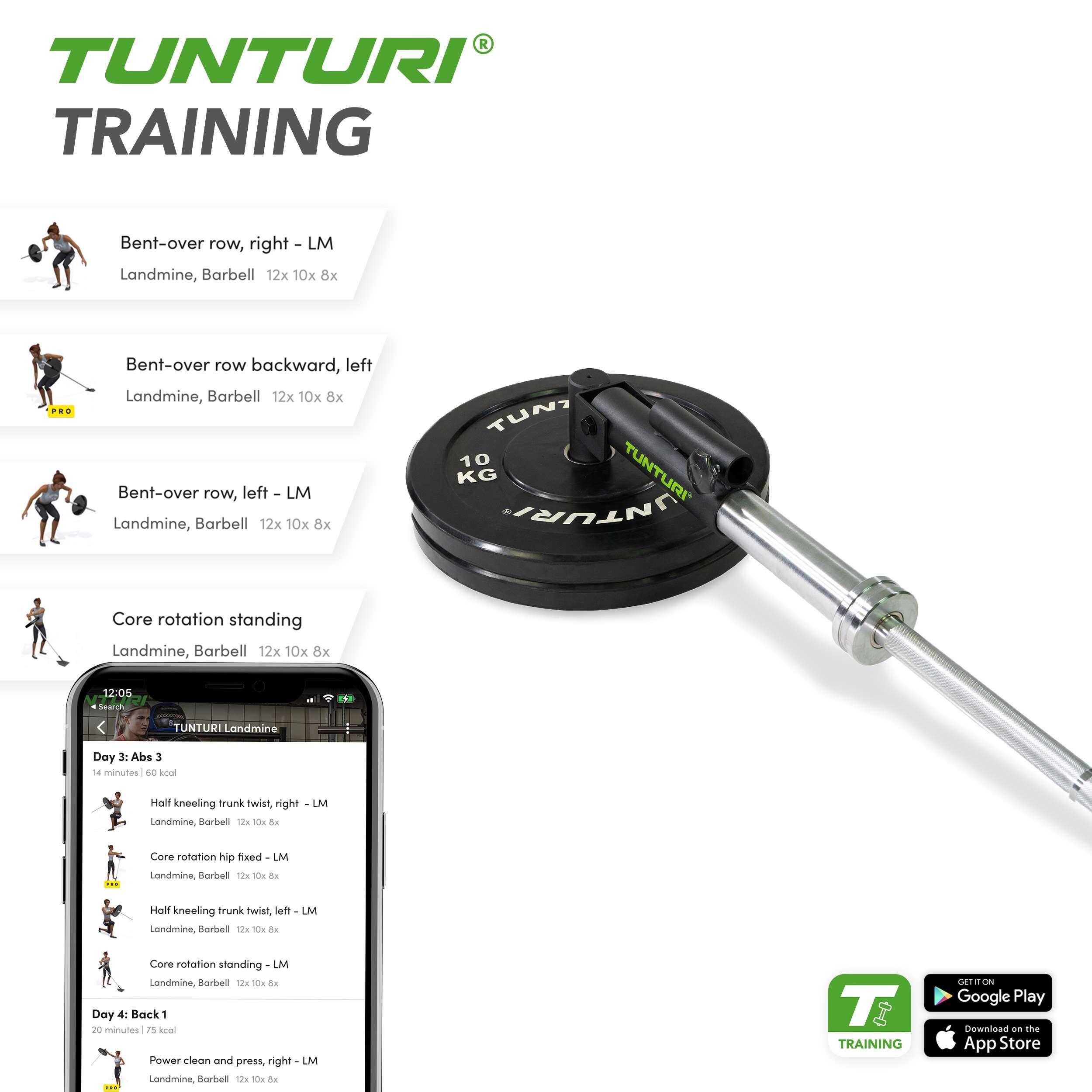 The Tunturi Landmine is a small tool for safely performing intensive exercises. All you need is a barbell and a stack of weight plates.