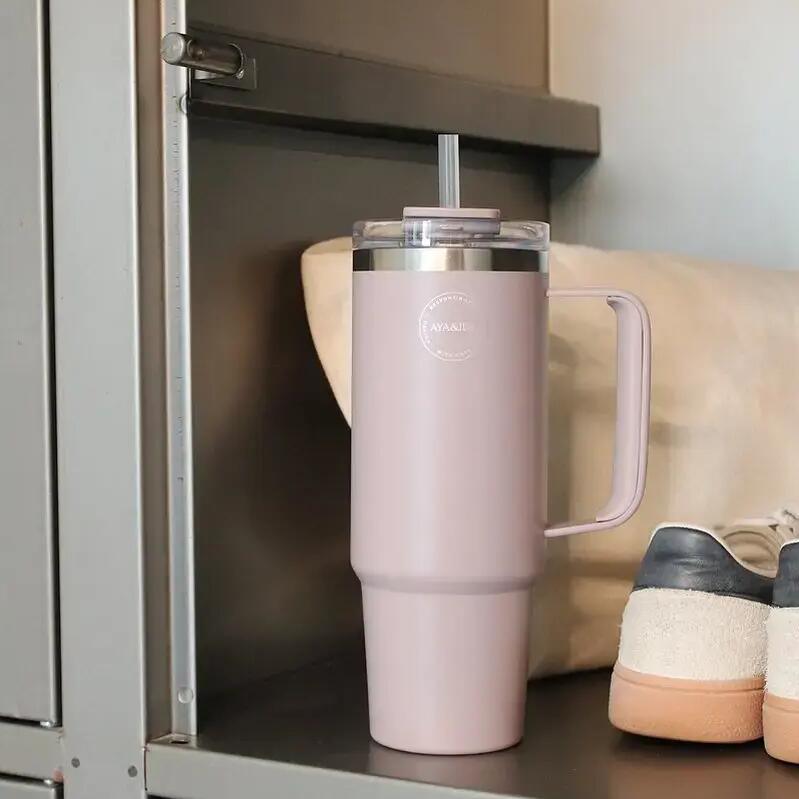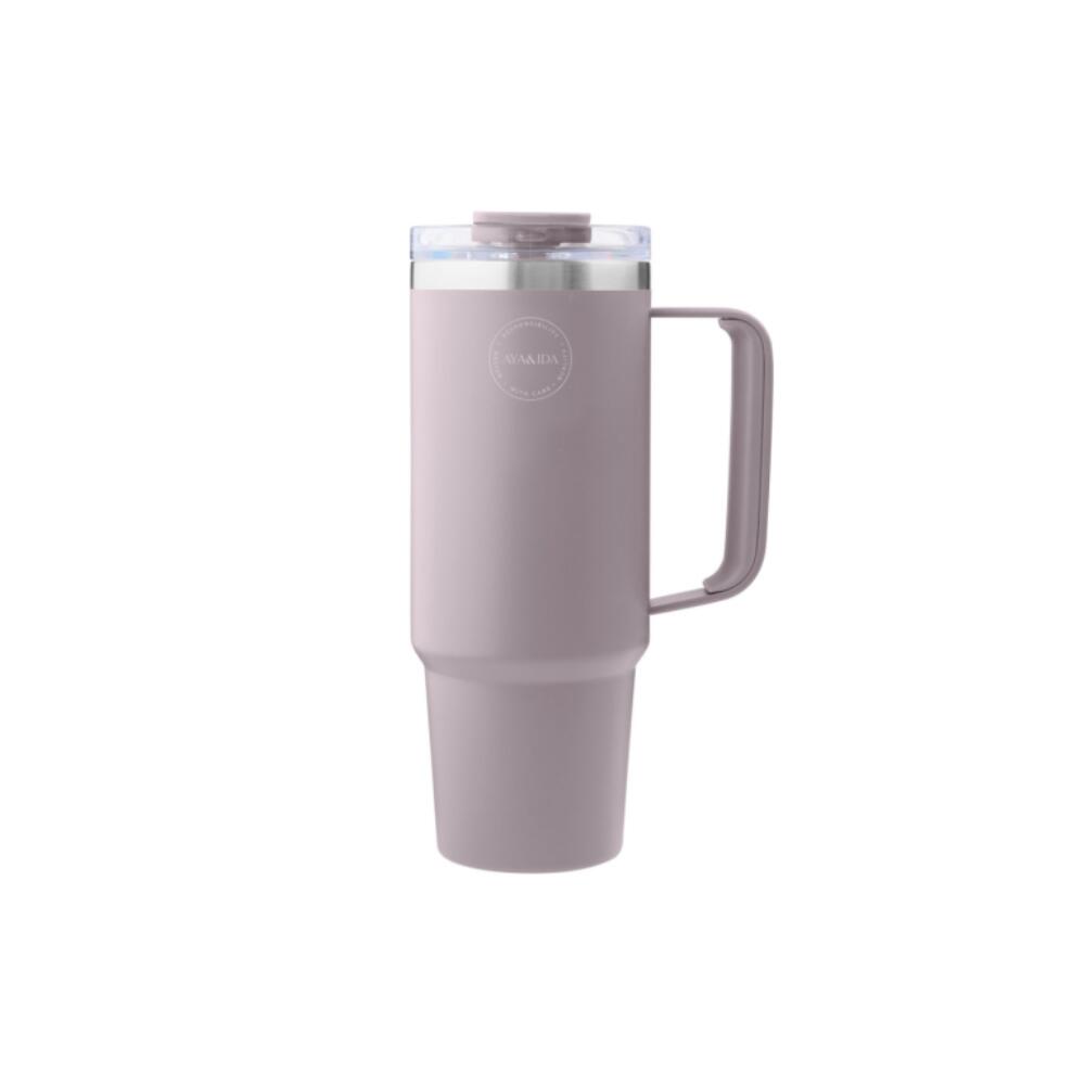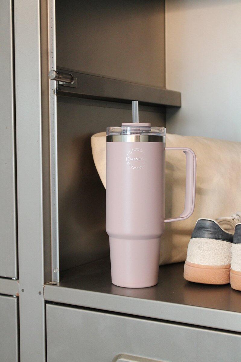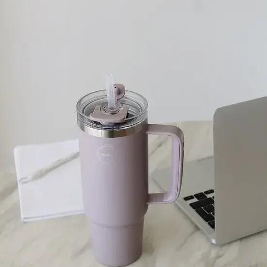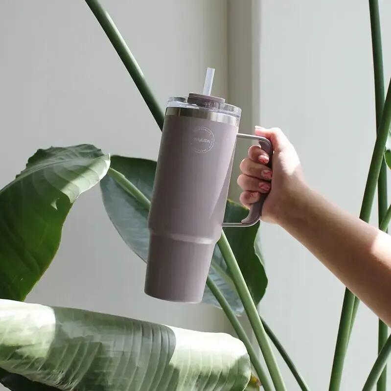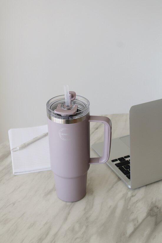 Generous 885 ml thermocup with straw – perfect for both hot and cold drinks anywhere.